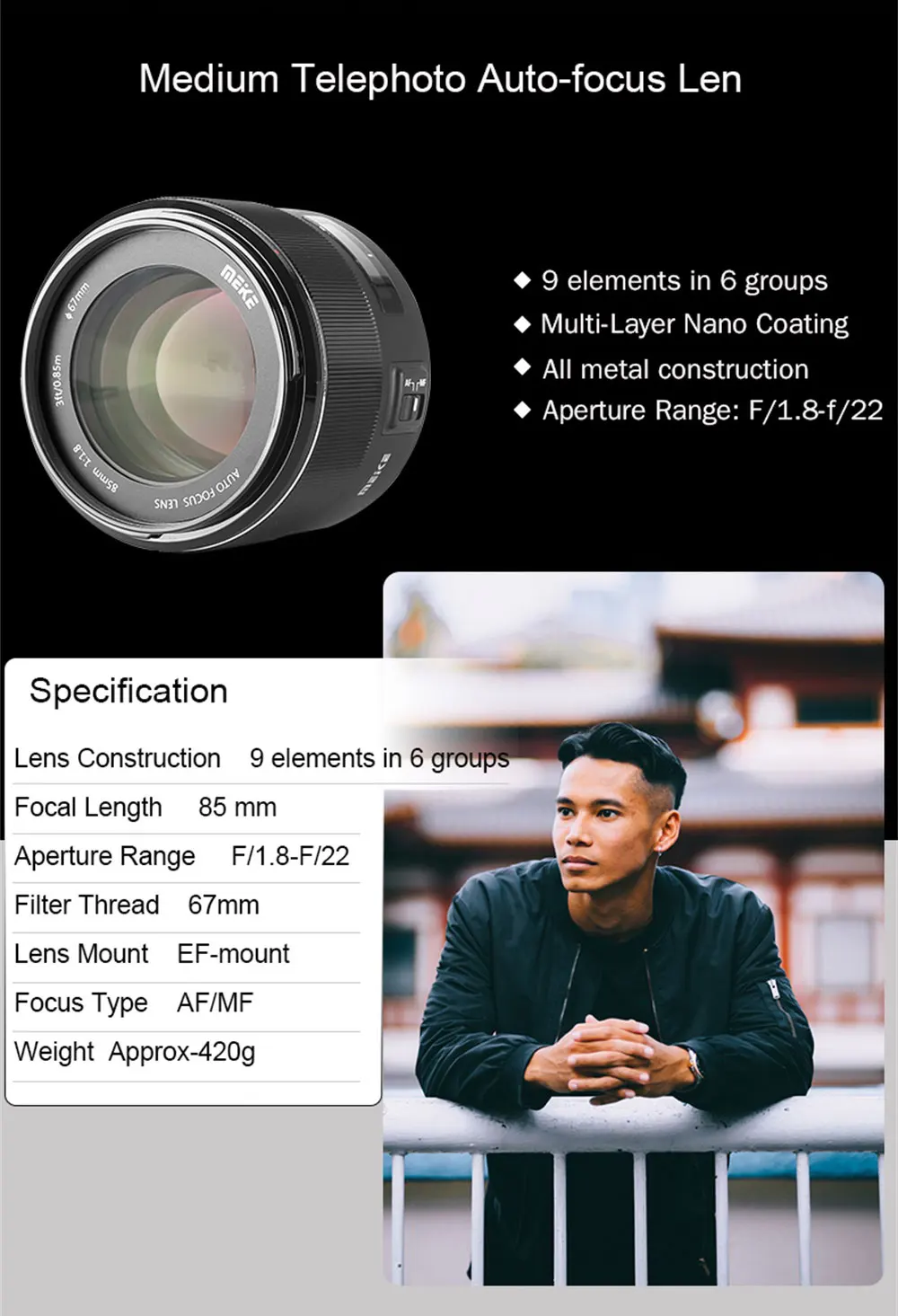 Полнокадровый телеобъектив Meike MK 85 мм F1,8 со средней фокусировкой и автофокусом для DSLR-камер Canon с креплением EF 600D 450D 750D 1300D
