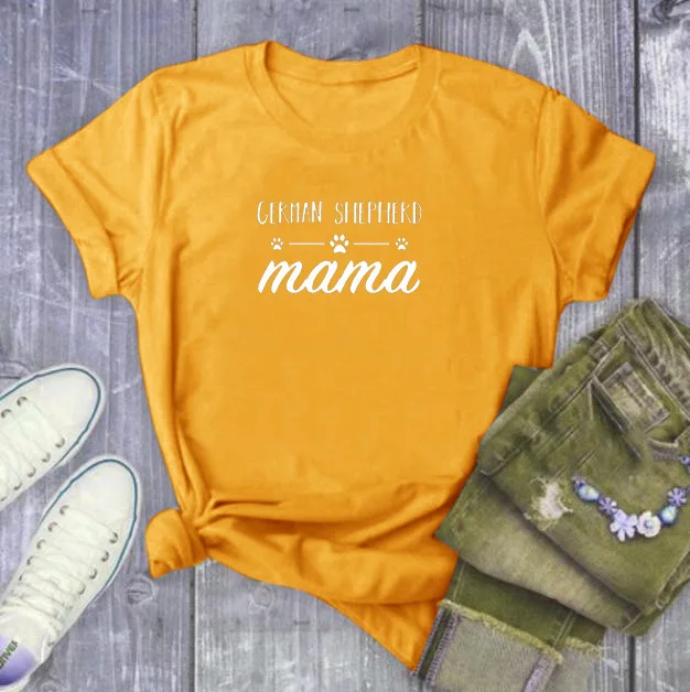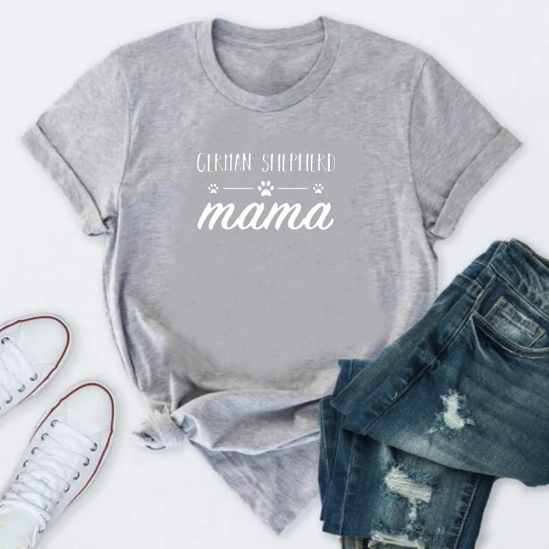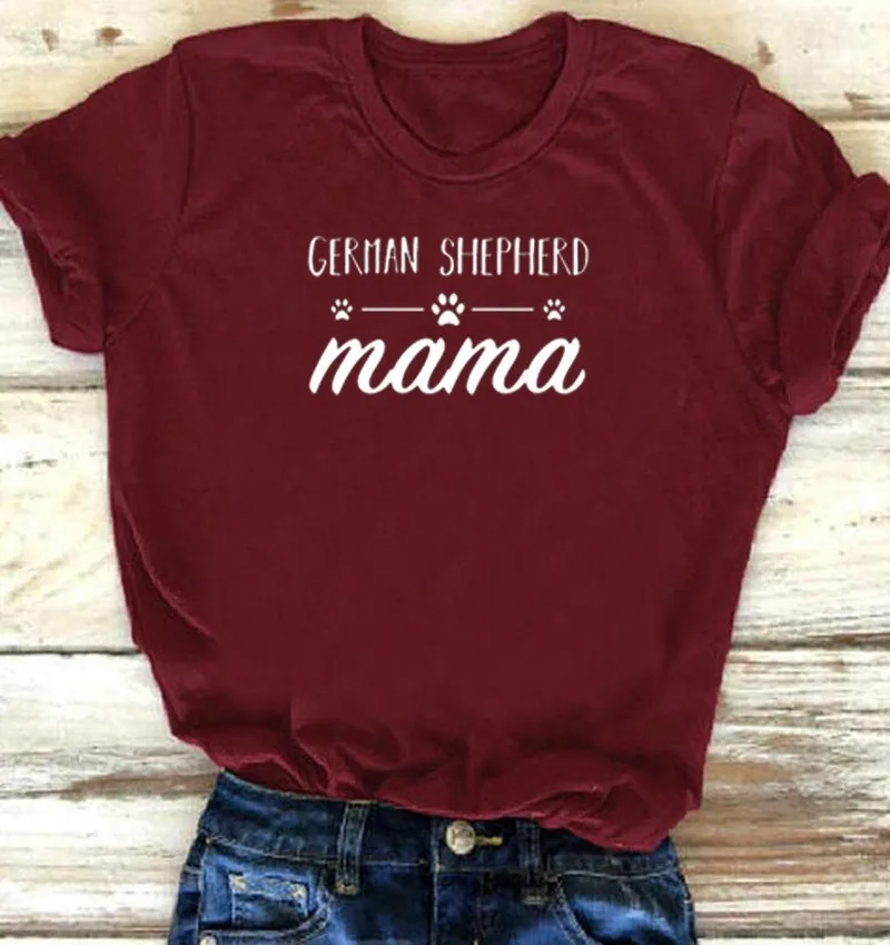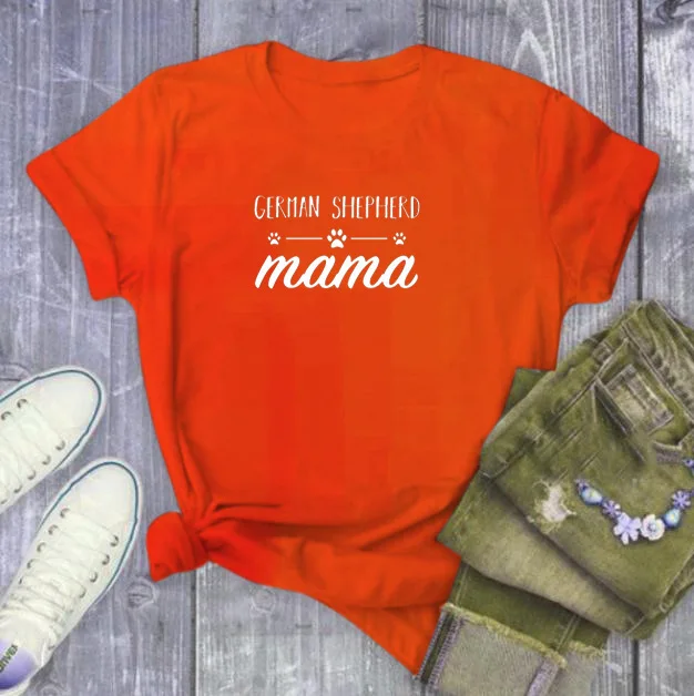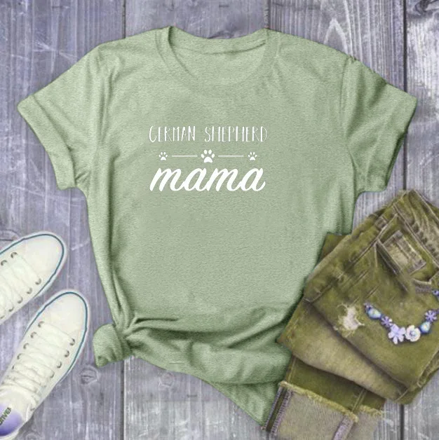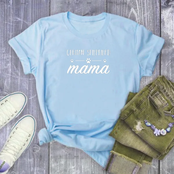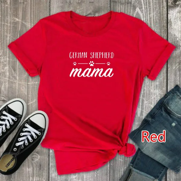 Немецкой овчарки с надписью Mama футболка для женщин с коротким рукавом О-образным вырезом, женская летняя женская футболка, топы