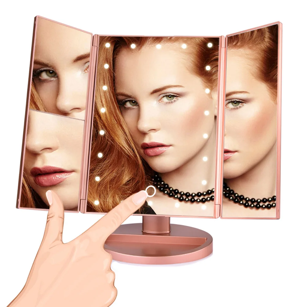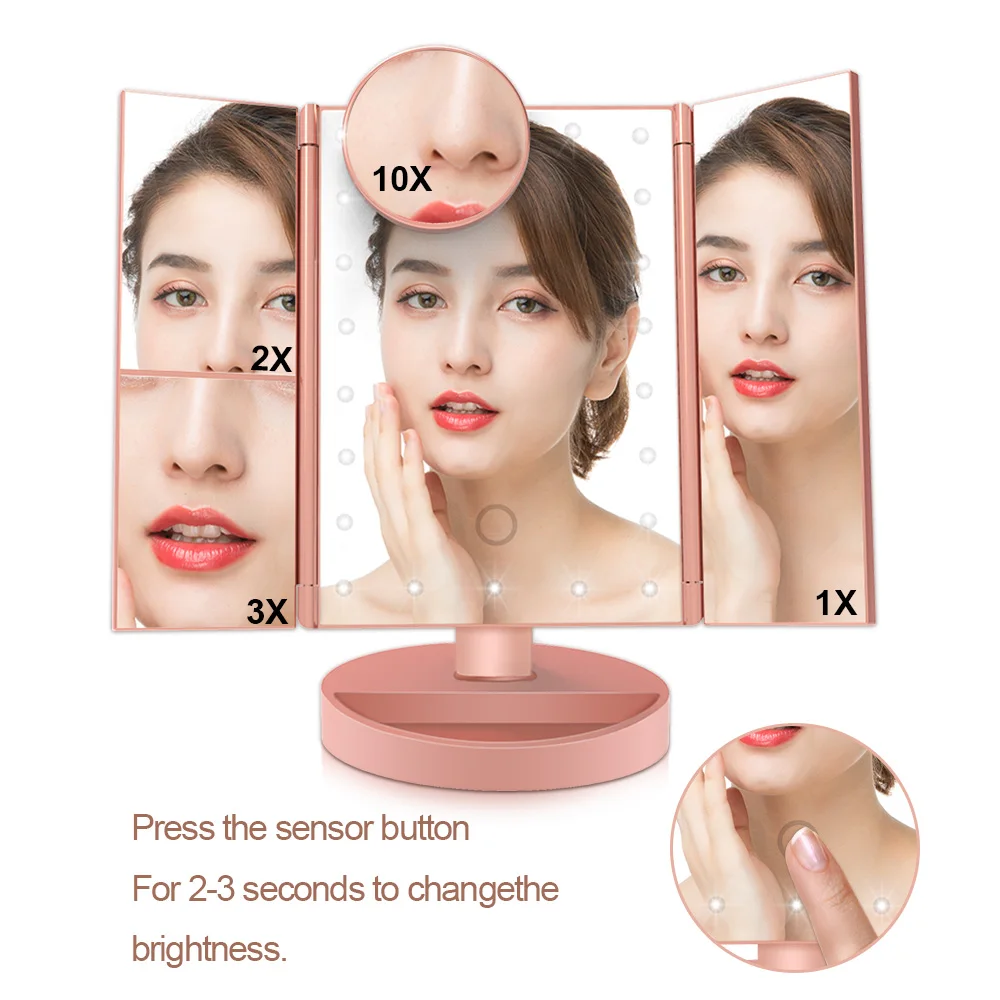 Светодиодный зеркало для макияжа с сенсорным экраном 22, Настольный светильник для макияжа 1X2X3X10X, Увеличительное Стекло Vanity 3, складное регулируемое зеркало