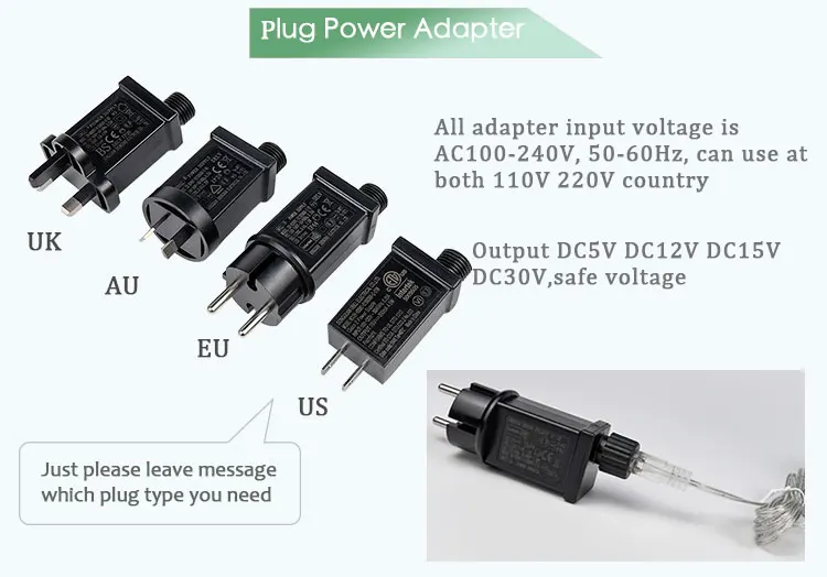 Цвет провода: зеленыйЦвет освещения: теплый белый, холодный белыйКоличество СВЕТОДИОДНЫЙ: 10 м 100 светодиодный20 м 200 светодиодов30 м 300 светодиодов50 м 500LED100 м 1000LEDКабель питания: от вилки до первого светодиодный: 2 метраВходное напряжение: AC100-240V, штепсельная вилка США/Великобритании/Австралии/ЕС для опции, пожалуйста, оставьте сообщениеВодонепроницаемость: адаптер IP44, гирлянда IP65 (адаптер для 10 м 20 м не является водонепроницаемым)Сертификация: CE RoHS FCC