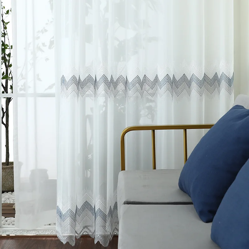 Современные белые тюлевые шторы с вышивкой для спальни, гостиной, готовые Синие Серые волнистые шторы