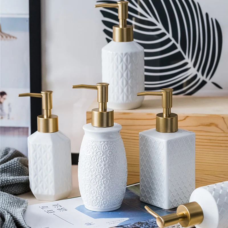 Белый керамический дозатор для мыла, аксессуары для ванной комнаты, бутылка для мыла для рук шампунь, гель для душа, нордическая бутылка для жидкого лосьона
