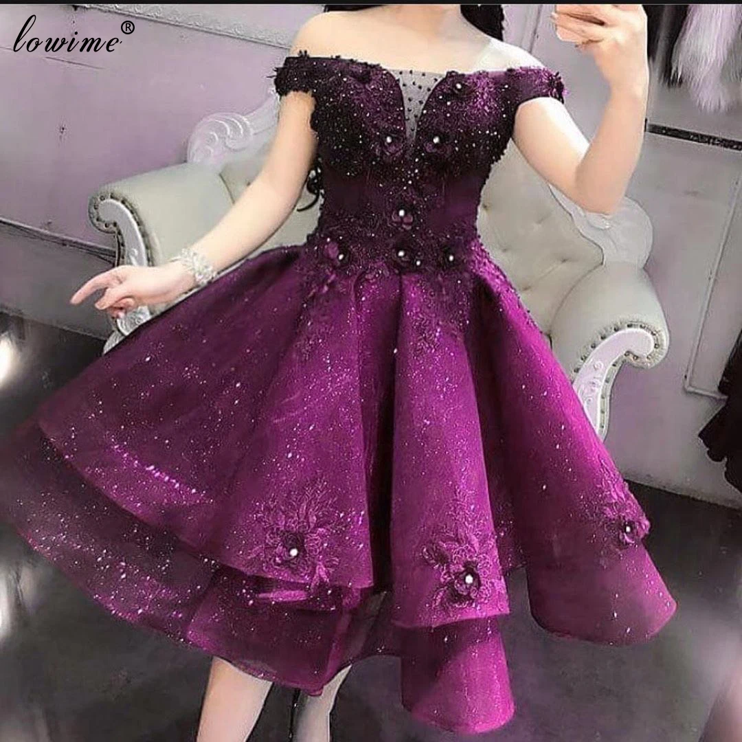 Роскошные блестящие коктейльные платья фиолетового цвета с цветами, расшитыми бисером, длиной до колена, коктейльные платья с открытыми плечами, вечерние для выпускного вечера, 2020