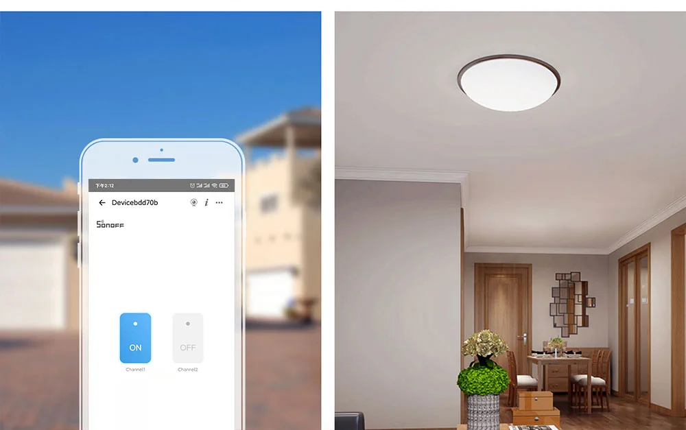 Просто нажмите на приложение eWeLink, чтобы включить светильник в любое время и в любом месте. Освещенный дом ожидает вашего прибытия