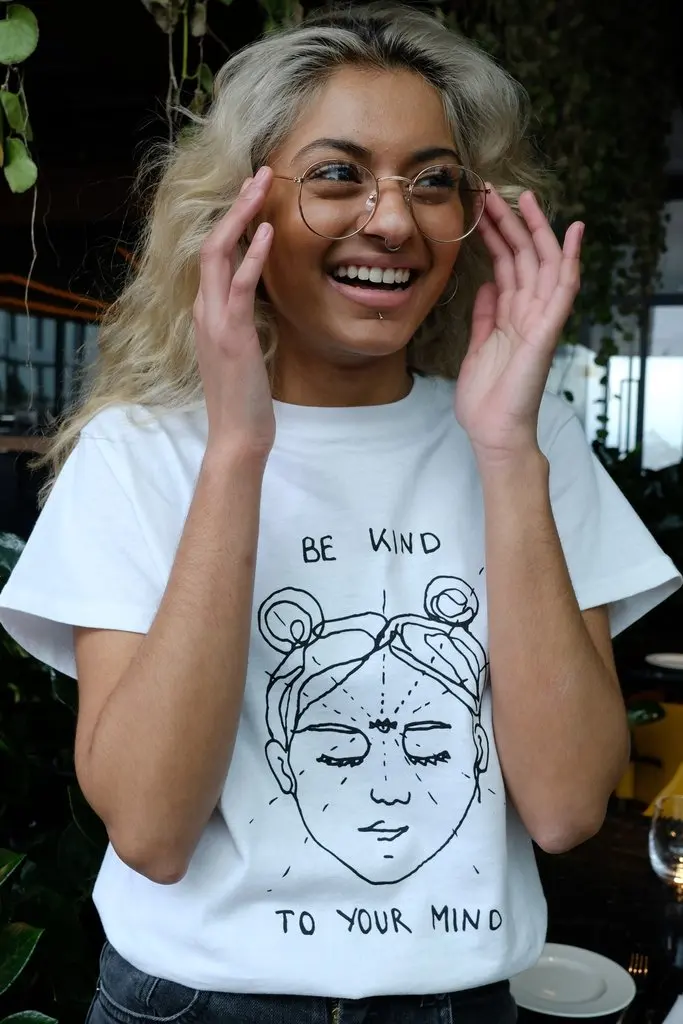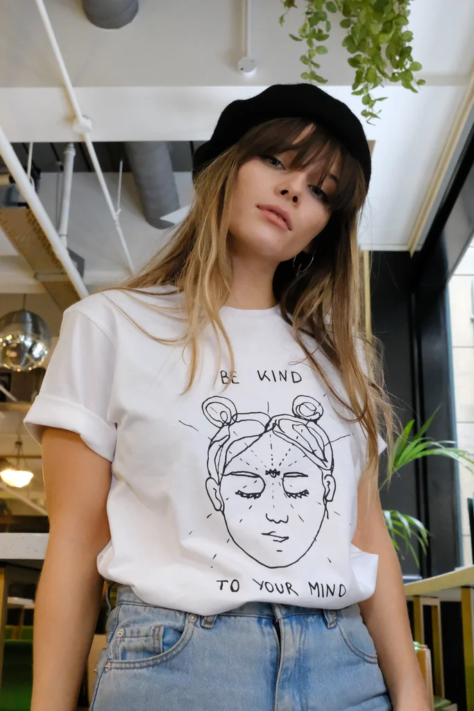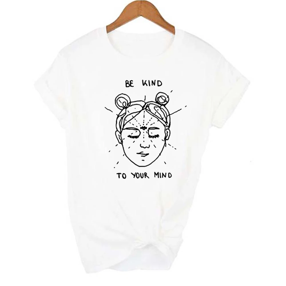 Женская футболка с рисунком Be Kind To Your Mind, летняя смешная футболка с круглым вырезом, рубашки с цитатами, хипстерская футболка