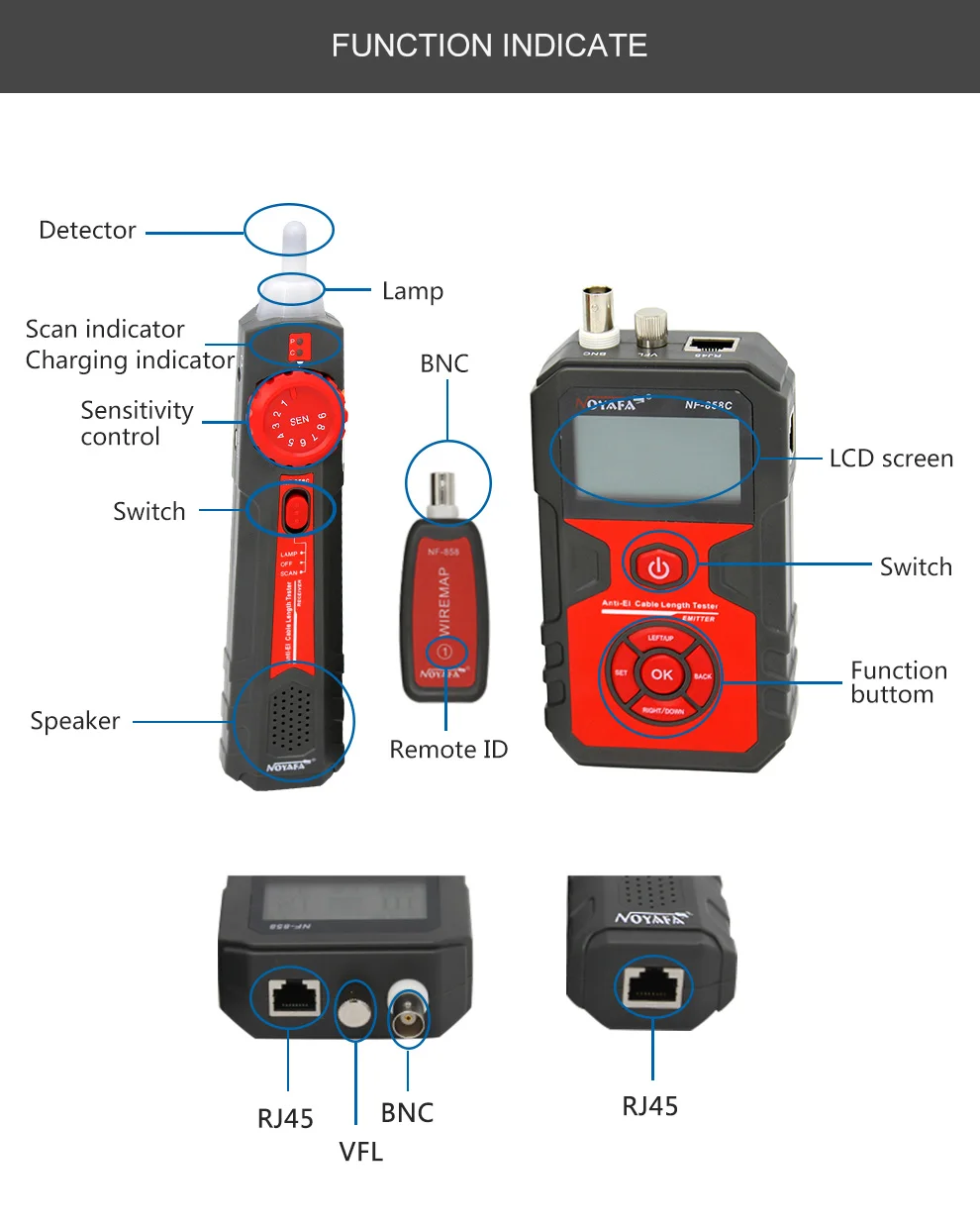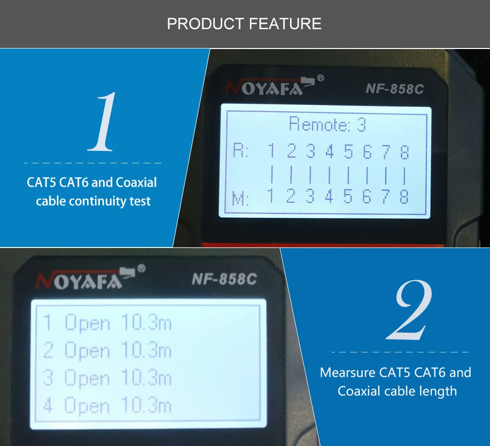 NOYAFA NF-858C кабель трассы линейный локатор портативный Проводной трекер Тестер кабеля тестер сетевого кабеля BNC измерение длины кабеля