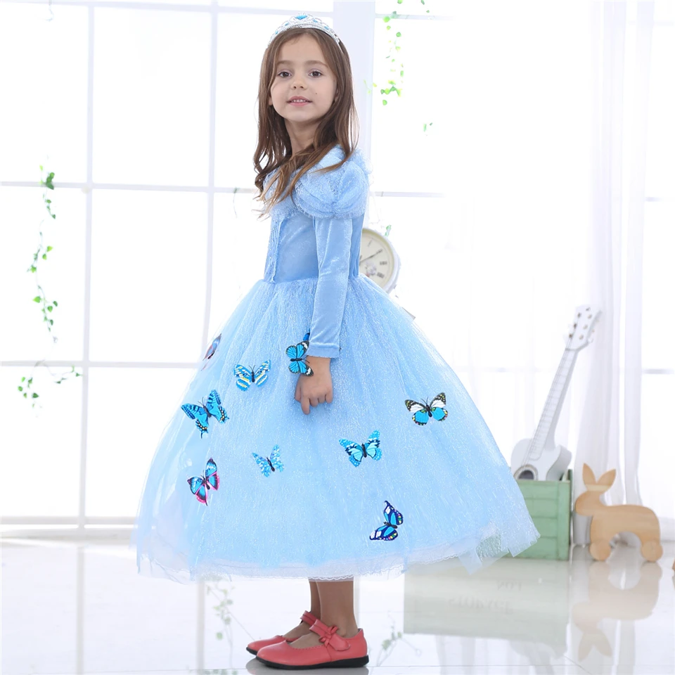 Фэнтези для девочек Тюль Бабочка Кристалл Королева Золушка платье Дети Рождество Маскировка дети красивая девочка Вечеринка бальное платье