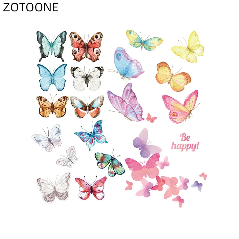 Нашивки ZOTOONE с бабочками для футболок, наклейки с цветами для детей, нашивка сделай сам для одежды, теплопередающие аппликации для одежды
