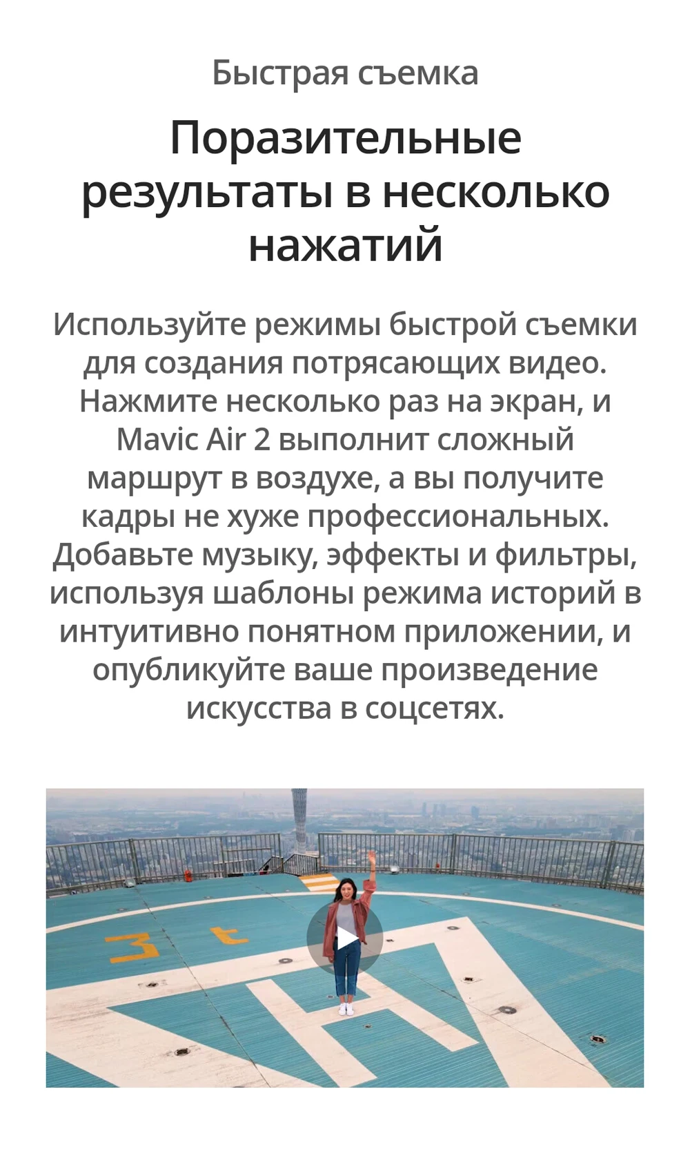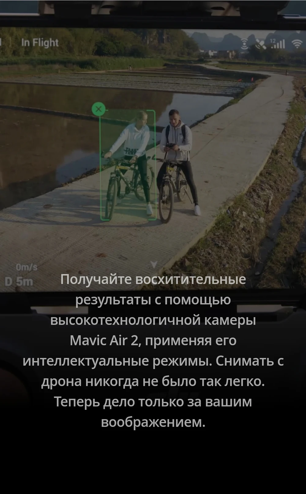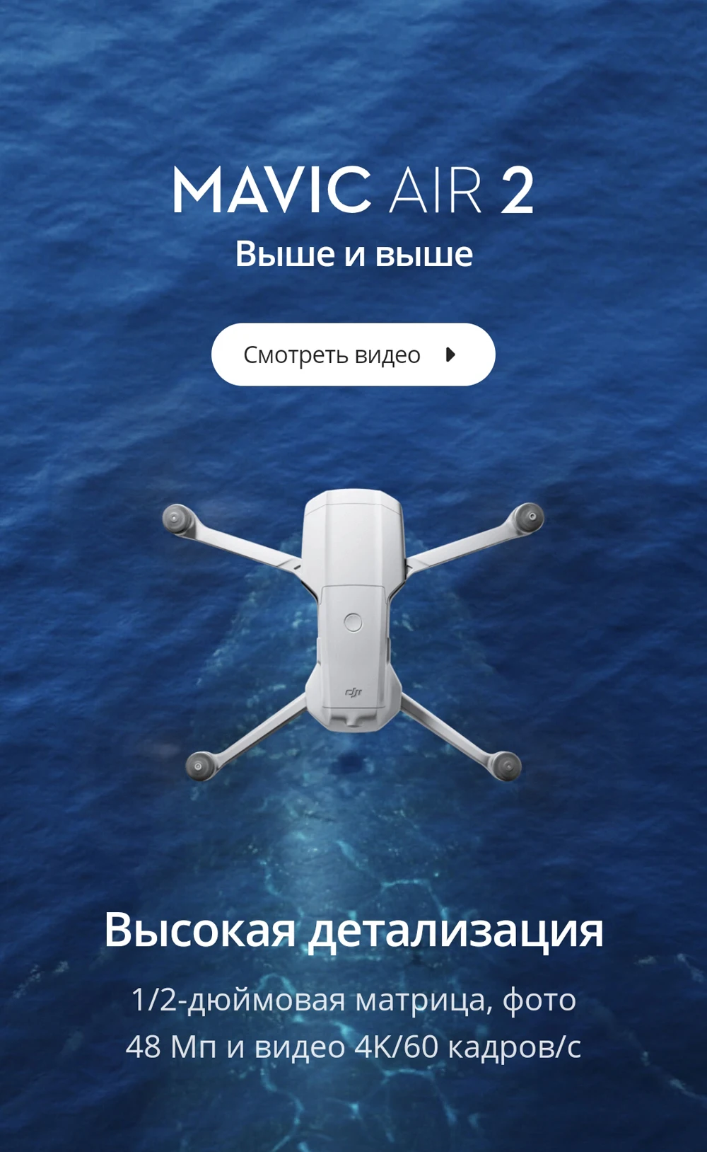 Дрон DJI Mavic Air 2, радиус 10км, камера, качество передачи видео HD, Гиперлапс 8K, функция быстрой съёмки, режим следования Active Track 3.0, система предотвращения столкновения с препятствиями