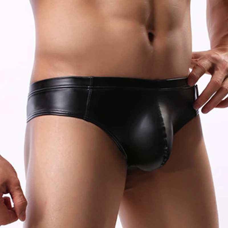 Мужское нижнее белье для сцены, мужские шорты из искусственной черной кожаное нижнее белье, мини-боксеры с серебристыми металлическими кольцами