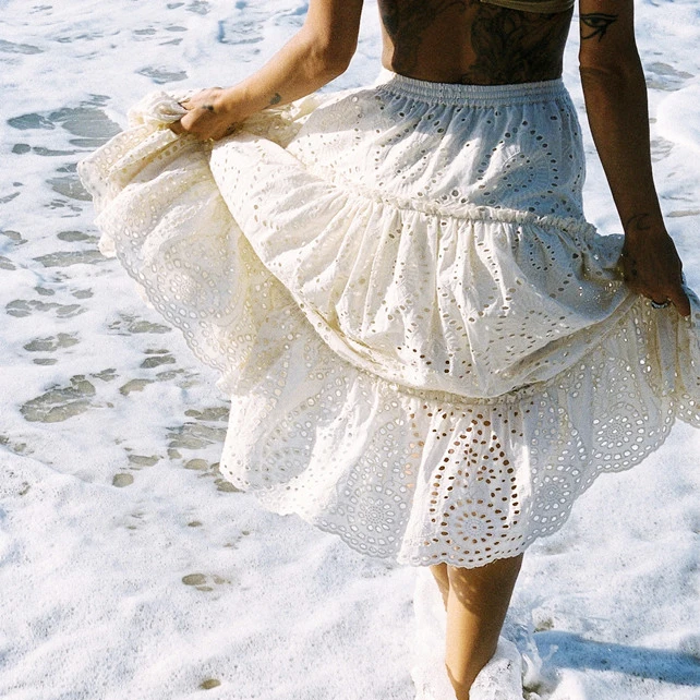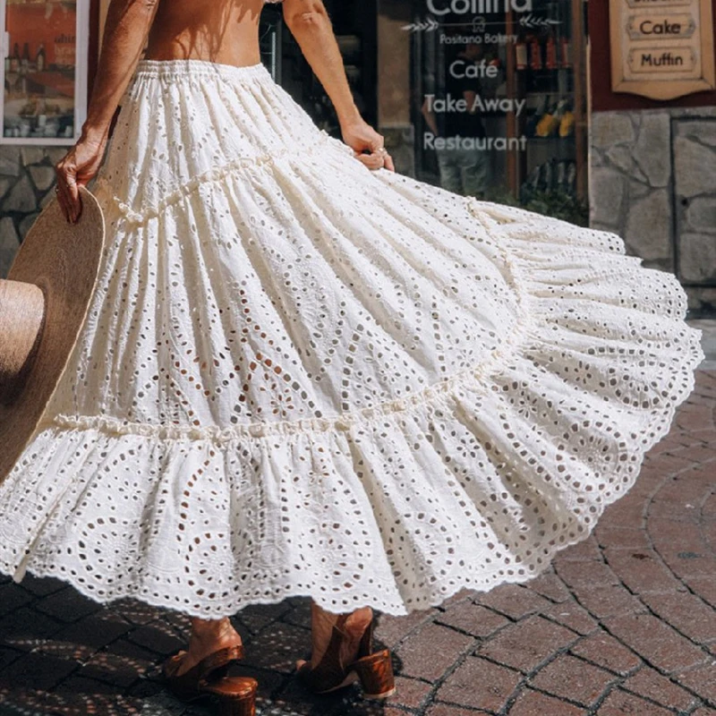 Женская кружевная юбка макси, Повседневная Эластичная длинная юбка из 100% хлопка, с бахромой, на шнуровке, для отдыха и пляжа, лето 2020