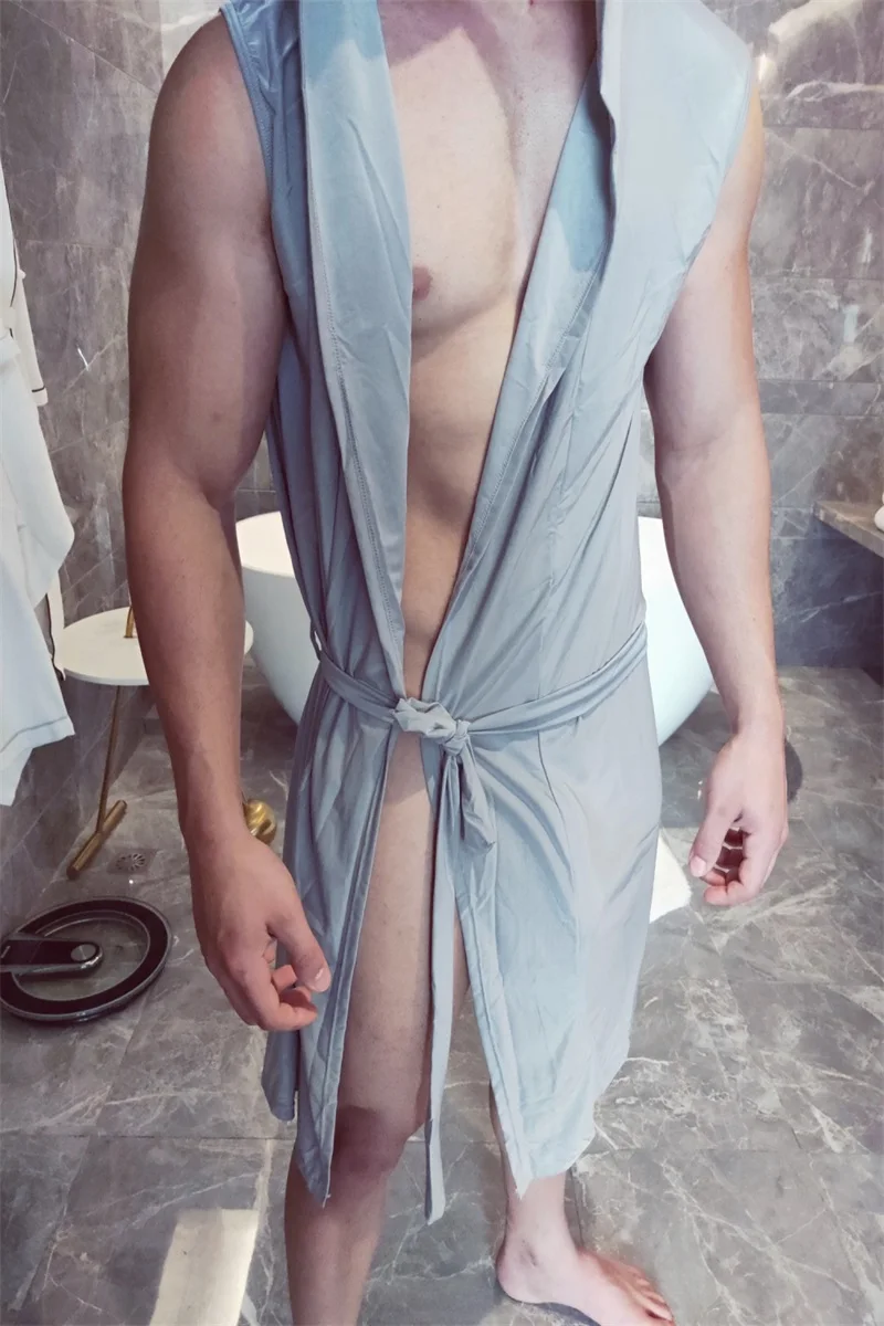 Супертонкий Гладкий купальный халат, удобный новый мужской Сексуальный банный халат, пижама с капюшоном, одежда для сна, домашние топы, одежда для сна, S-4XL