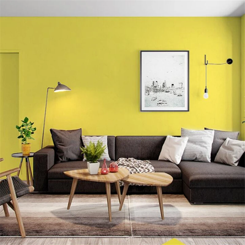 Beibehang нордические современные минималистичные однотонные лимонно-желтые простые диатомные грязевые обои для гостиной спальни фоновая бумага