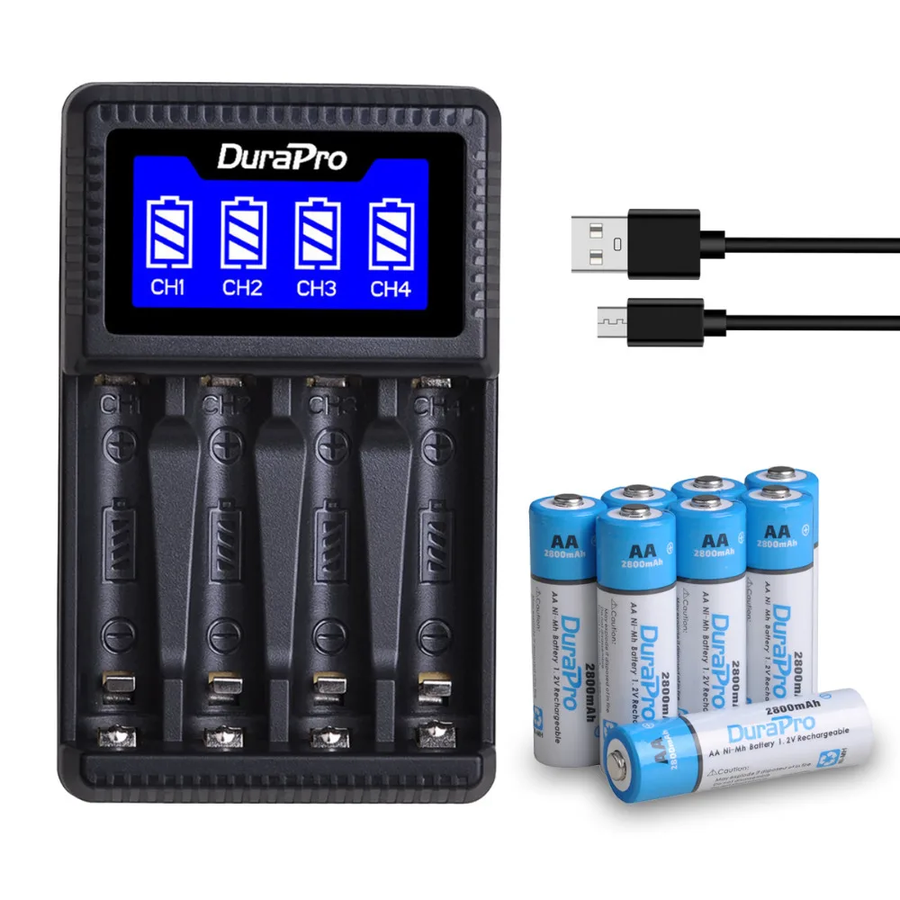 DuraPro AA AAA Ni-MH аккумуляторная батарея зарядное устройство набор для aa aaa калькулятор mp3-плеер, пульт дистанционного управления, игрушки, динамик, камера