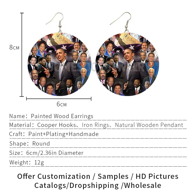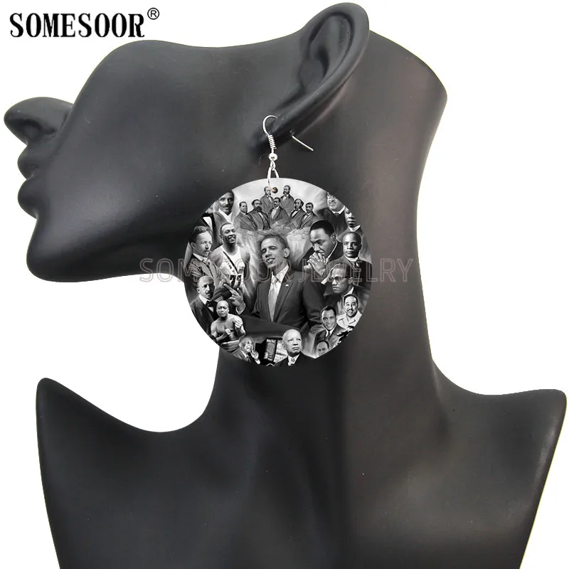 SOMESOOR AKA черная история лидеры окрашенные африканские деревянные висячие серьги Обама Манделы Мишель дизайн подвеска Уши висячие ювелирные изделия