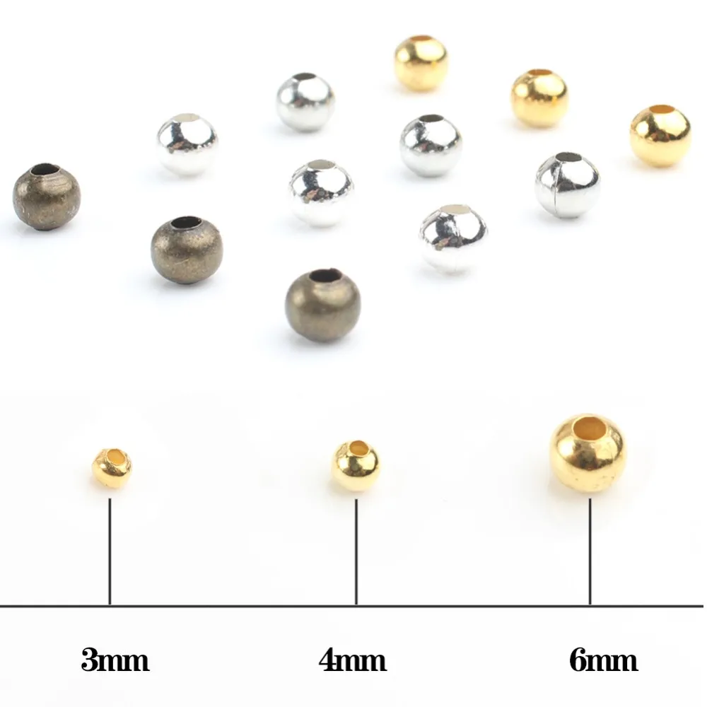 Круглые золотистые и бронзовые бусины-разделители, 500 шт.лот, 3, 4, 6 мм