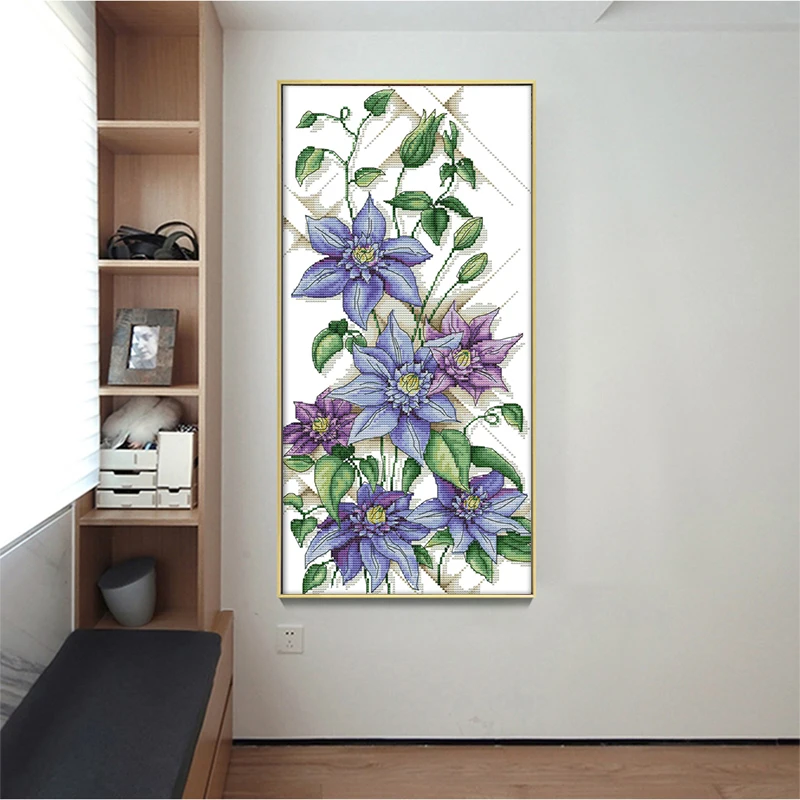 Joy Sunday цветущие фиолетовые цветы Набор для вышивки крестиком 14CT 11CT холст печать узор Сделай Сам рукоделие вышивка набор