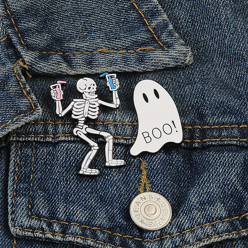 Хэллоуин Вечеринка панк готический пьяный Череп Призрак Скелет Брош...