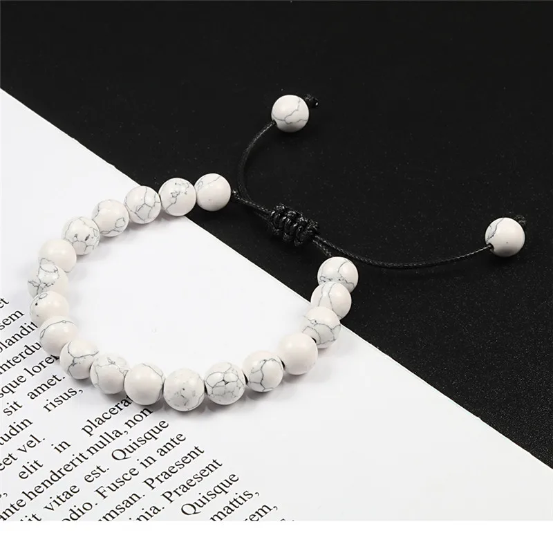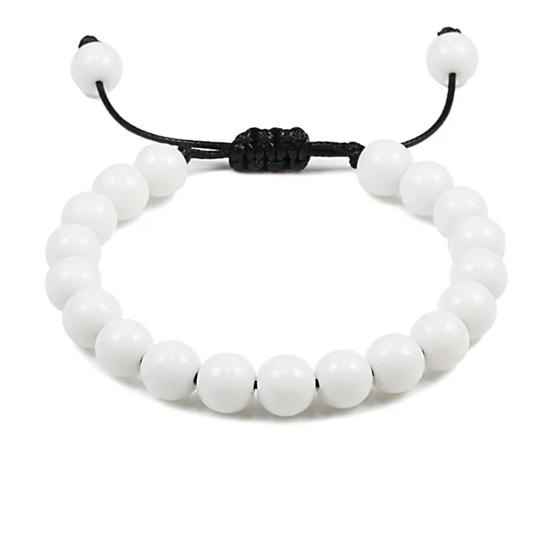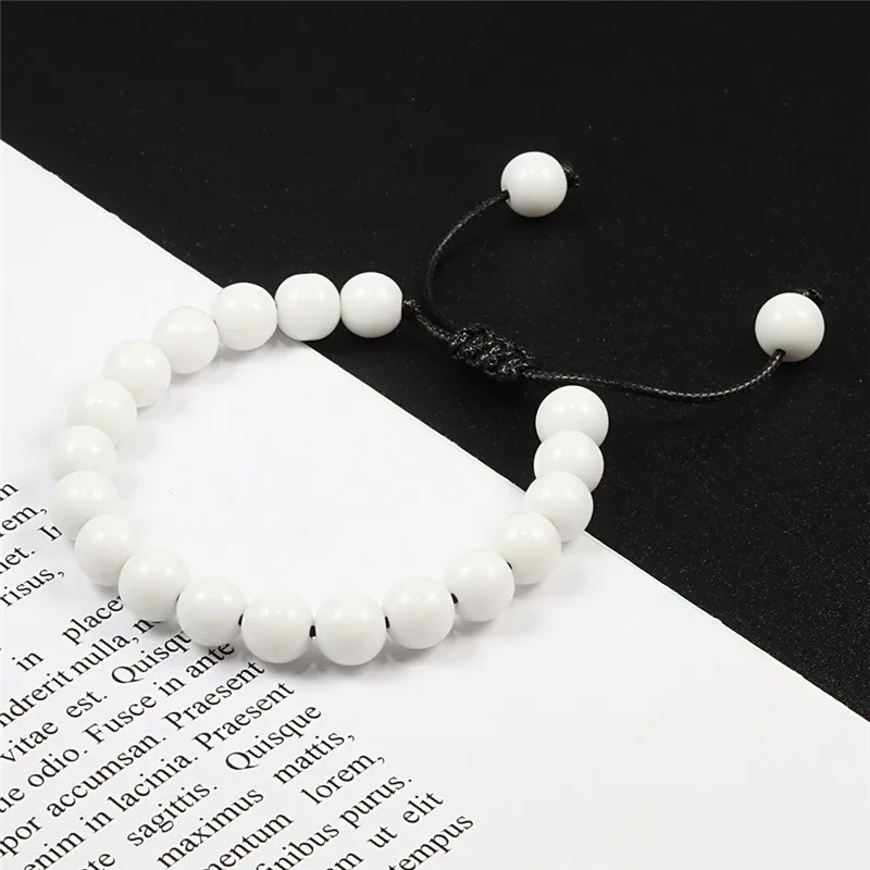 Регулируемые Парные браслеты, 8 мм бусины, черно-белые плетеные браслеты макраме для влюбленных, для женщин и мужчин, ювелирные браслеты