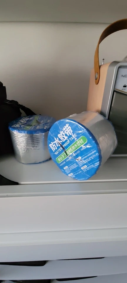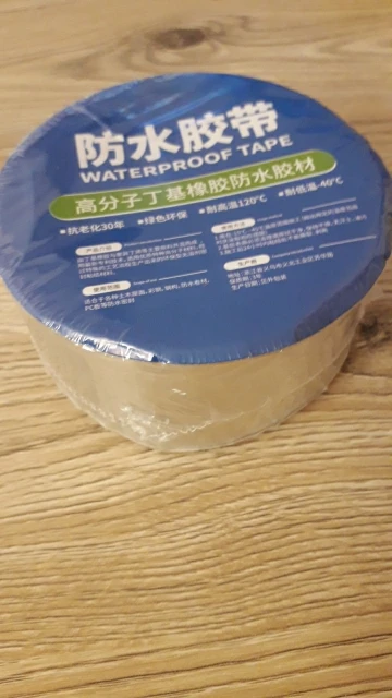 Быстро доставили с виду норм. Клеится хорошо. В деле ещё не проверял. С боку много клейкого вещества вылазит, но его можно убрать. Мне кажется, что водостойкая. Подобную ленту использовал ранее и все было норм.