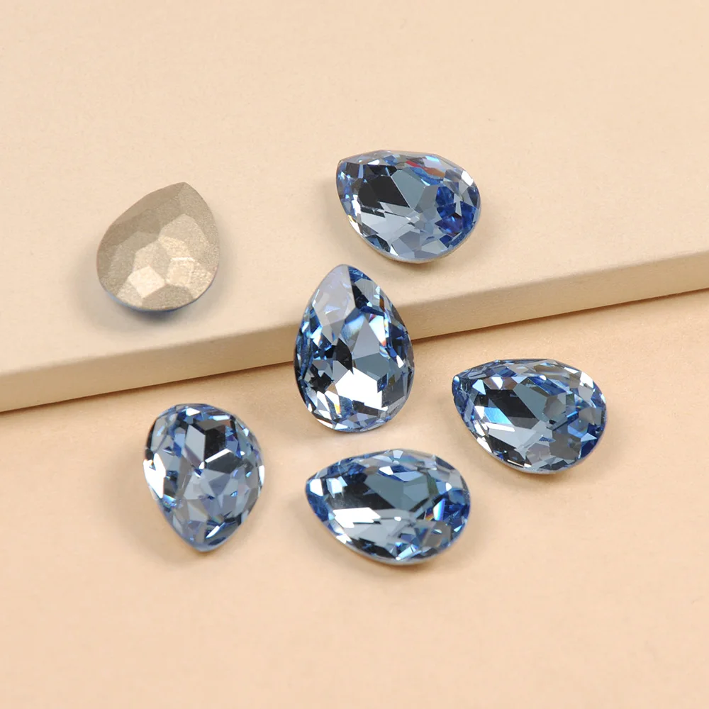 4300 Стразы каплевидные аквамариновые стеклянные стразы с когтями П...