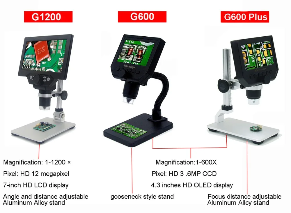 Микроскоп электронный 600X, видео-микроскоп паяльный 4,3-дюймов с ЖК-экраном HD для ремонта телефона с лупой и металлической подставкой
