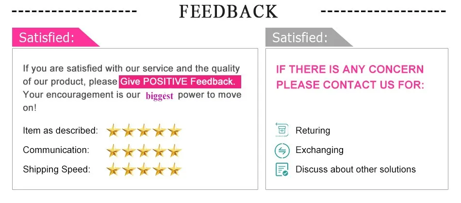 Дорогие друзья. Если вы обнаружите, что товары имеют проблемы с качеством или не удовлетворены товарами, вы можете вернуть их в любое время после получения товара. Расходы, понесенные нами.(В течение 15 дней после получения товара)(В настоящее время поддерживаются только страны и продукты, которые поддерживают бесплатную возврат, поддерживаемые AliExpress)