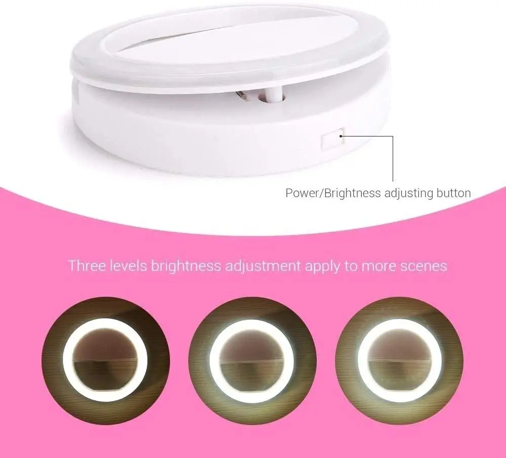 Особенности:Использование противоскользящего коврика не повредит объектив вашего мобильного телефона.Больше не беспокойтесь о царапинах ваших устройств.Благодаря естественному освещению, равномерной яркости освещения, сверхширокому диапазону освещения вы сможете получить естественные оттенки кожи.Вы также можете использовать фонарь, аварисветильник, макиясветильник светодиодный ночсветильник и многое другое.Этот специально разработанный светильник для селфи обеспечивает дополнительный или бокосветильник для фотосъемки в условиях слабосветильник щения.Макро-светильник Пышка кольцевого типа разработана специально для крупных планов, медицинской, научной, судебной фотографии и т. д.Описание:Его можно легко носить в карманах или сумке, поэтому вы можете наслаждаться использованием его повсюду.Вы сможете снимать видео ночью или делать отличные селфи в темных местах; Вы можете использовать его с задней камерой для получения высококачественных фотографий.Простая и гибкая установка, простота использования.Легкий, тонкий и ударопрочный.Макровспышка кольцевого типа разработана специально для крупного плана, медицины, науки, судебной фотографии и т. д.Эта макрокольцевая вспышка освещает объект, независимо от уровня освещения.Характеристики:Цвет: черный/белыйМатериал: пластикИсточник питания: 1,5 В (AAA)x 2 (не входит в комплект)Размер: 8,4x2,3 смПосылка1 х Кольцевая вспышка