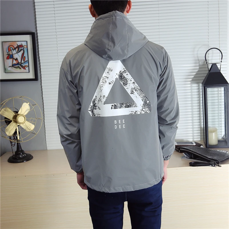 Светоотражающая куртка с капюшоном, Мужская ветровка в стиле Харадз...