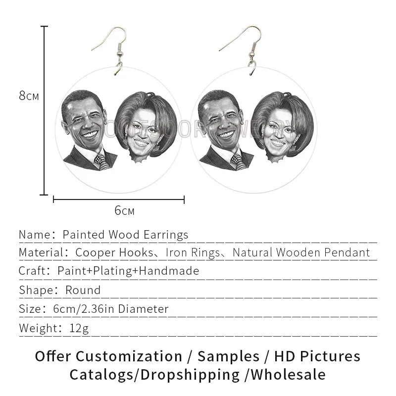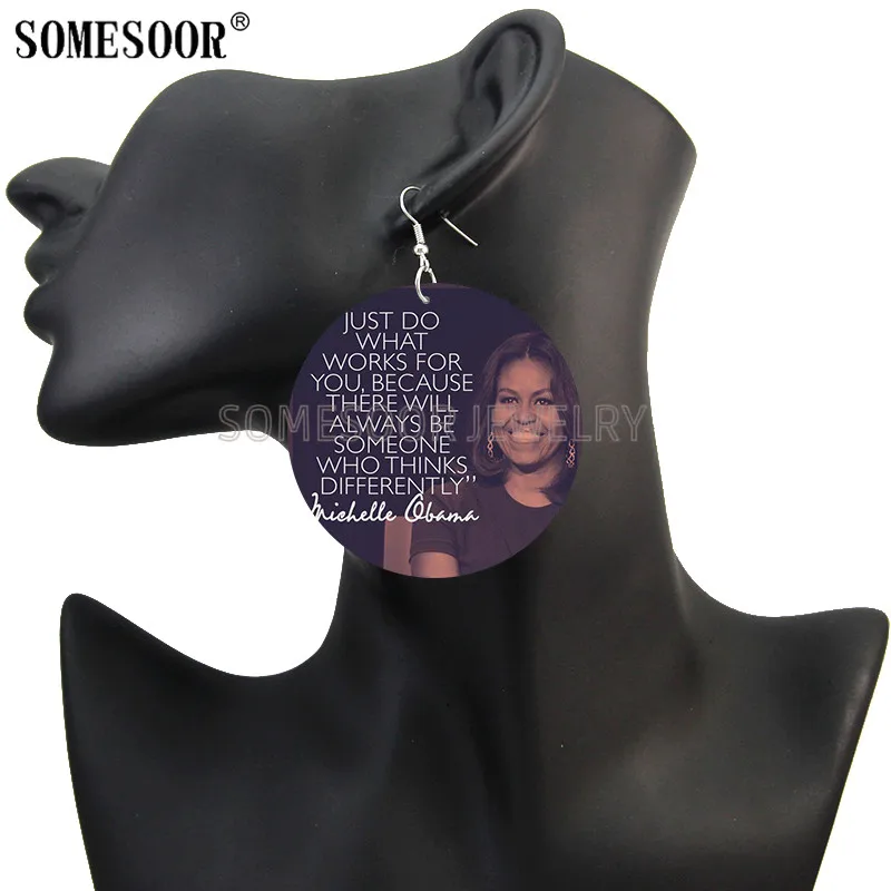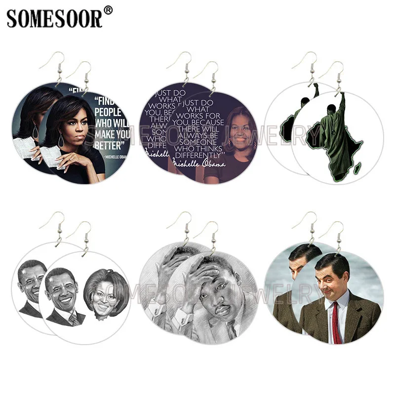 Деревянные серьги-подвески SOMESOOR, с изображением черных героев, мужских и женских портретов, Мишель Обама, Мартин, меланин, гордые Подарки для женщин