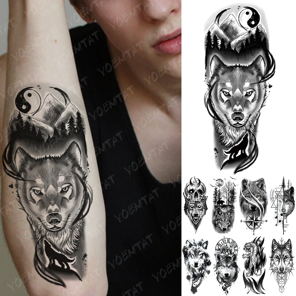 Татуировка Временная водостойкая, наклейка на руку для мужчин и женщин, тигр, волк, гора, флэш-тату, Инь и Ян, боди-арт