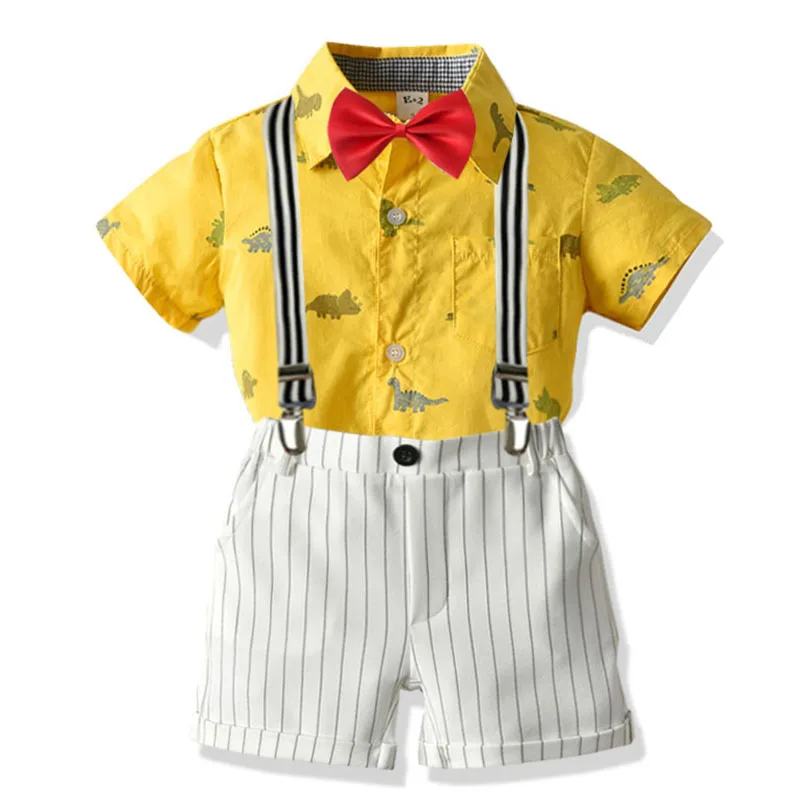 Детский Костюм Джентльмена для маленьких мальчиков, модные комплекты одежды, рубашка с животными, топы, комбинезоны, шорты штаны Одежда вечерние костюм для мальчиков