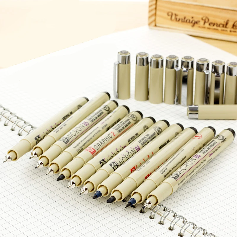 Маркеры для рисования, водостойкие, без протечек, черные, ручка Pigma Micron набор