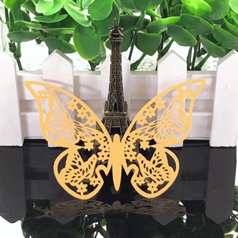 50 шт. бабочка Лазерная резка бокал для вина бумажные карты Эскорт место чашки карты DIY детский душ для свадебного декора сувениры вечерние принадлежности