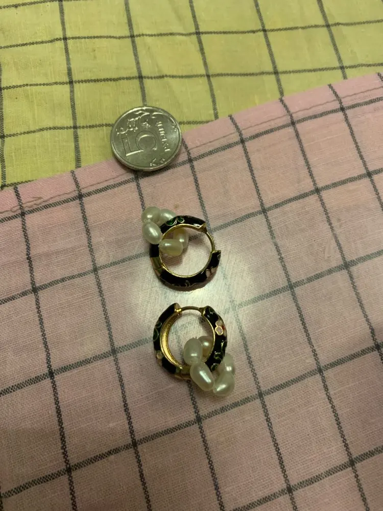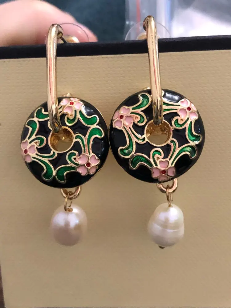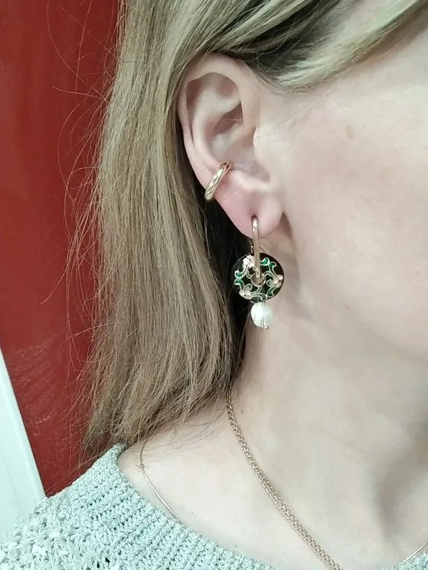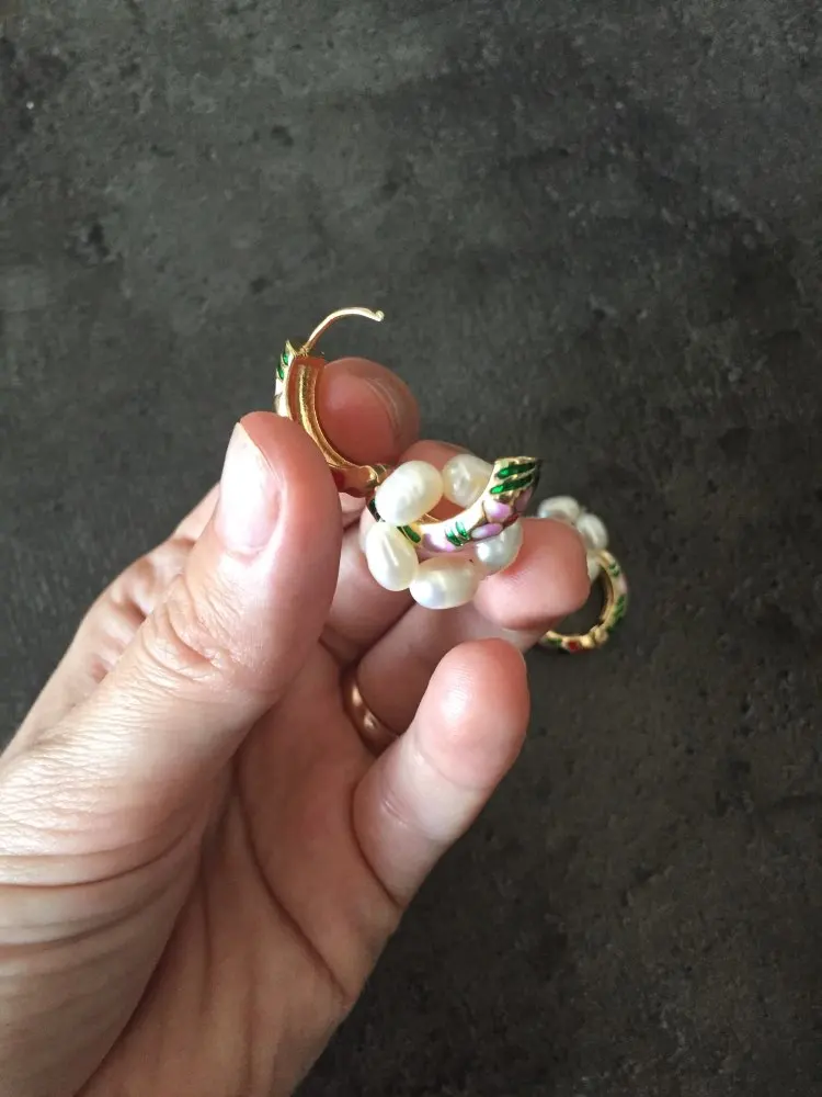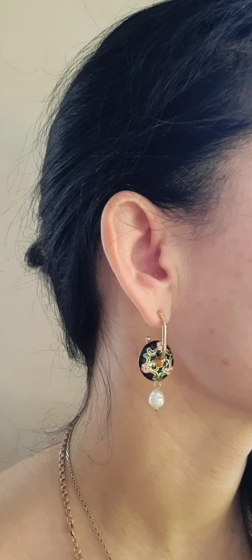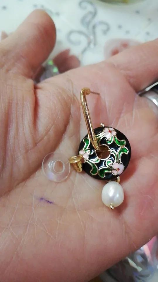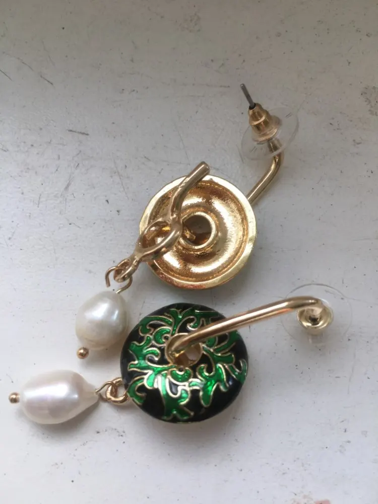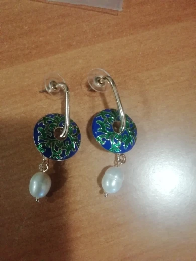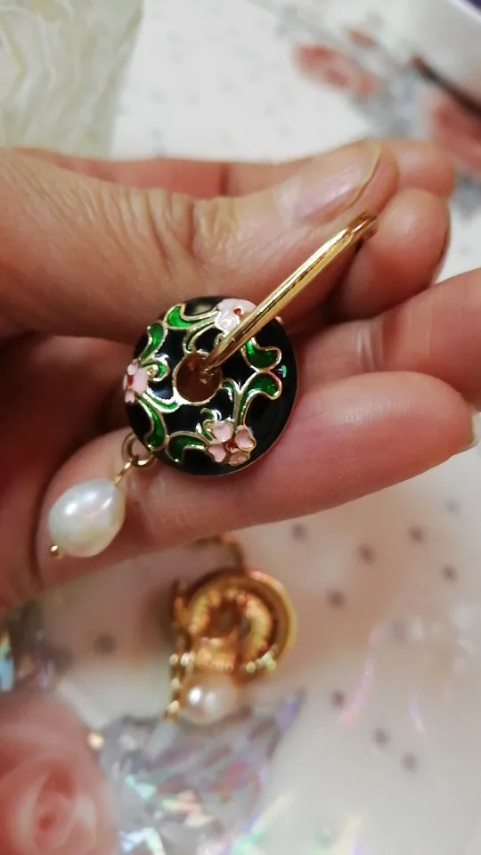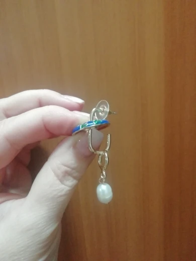 Отличные серьги. Приехали быстро. Смотрятся стильно. Увесистые. Жемчуг вроде натуральный речной. Диски с эмалью можно снять и повесить что-то другое.