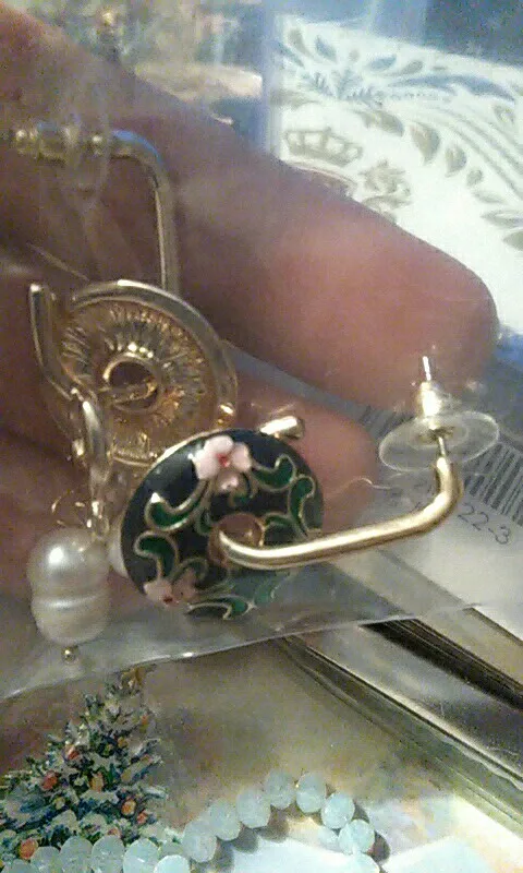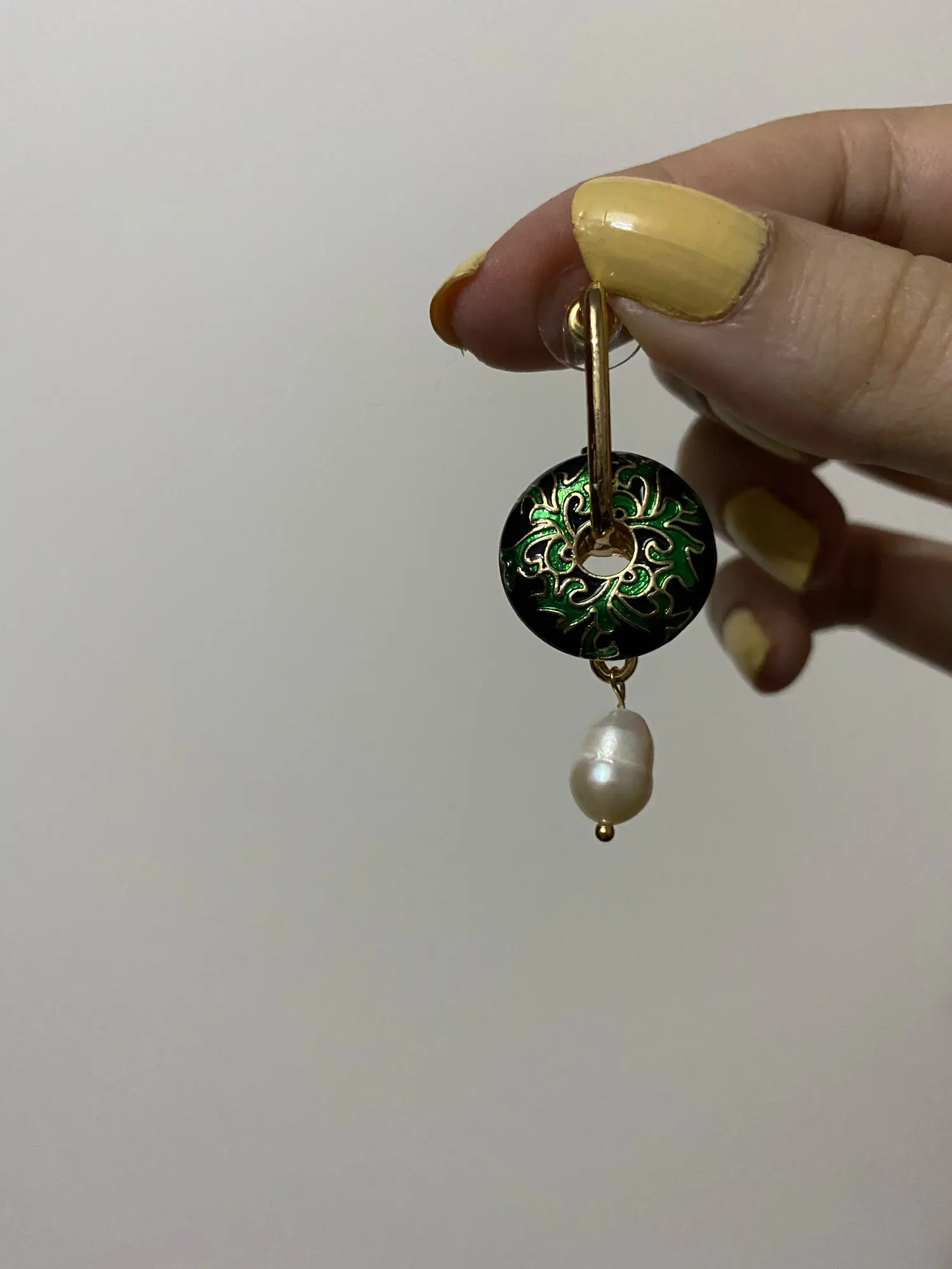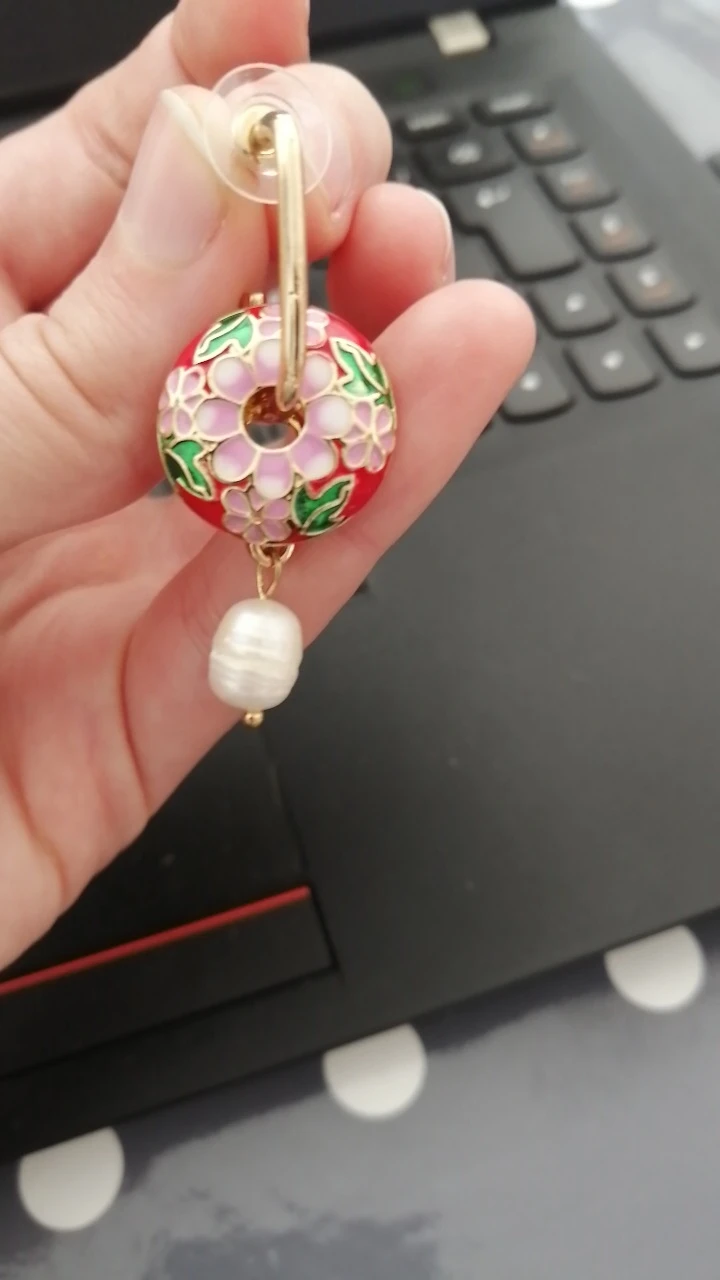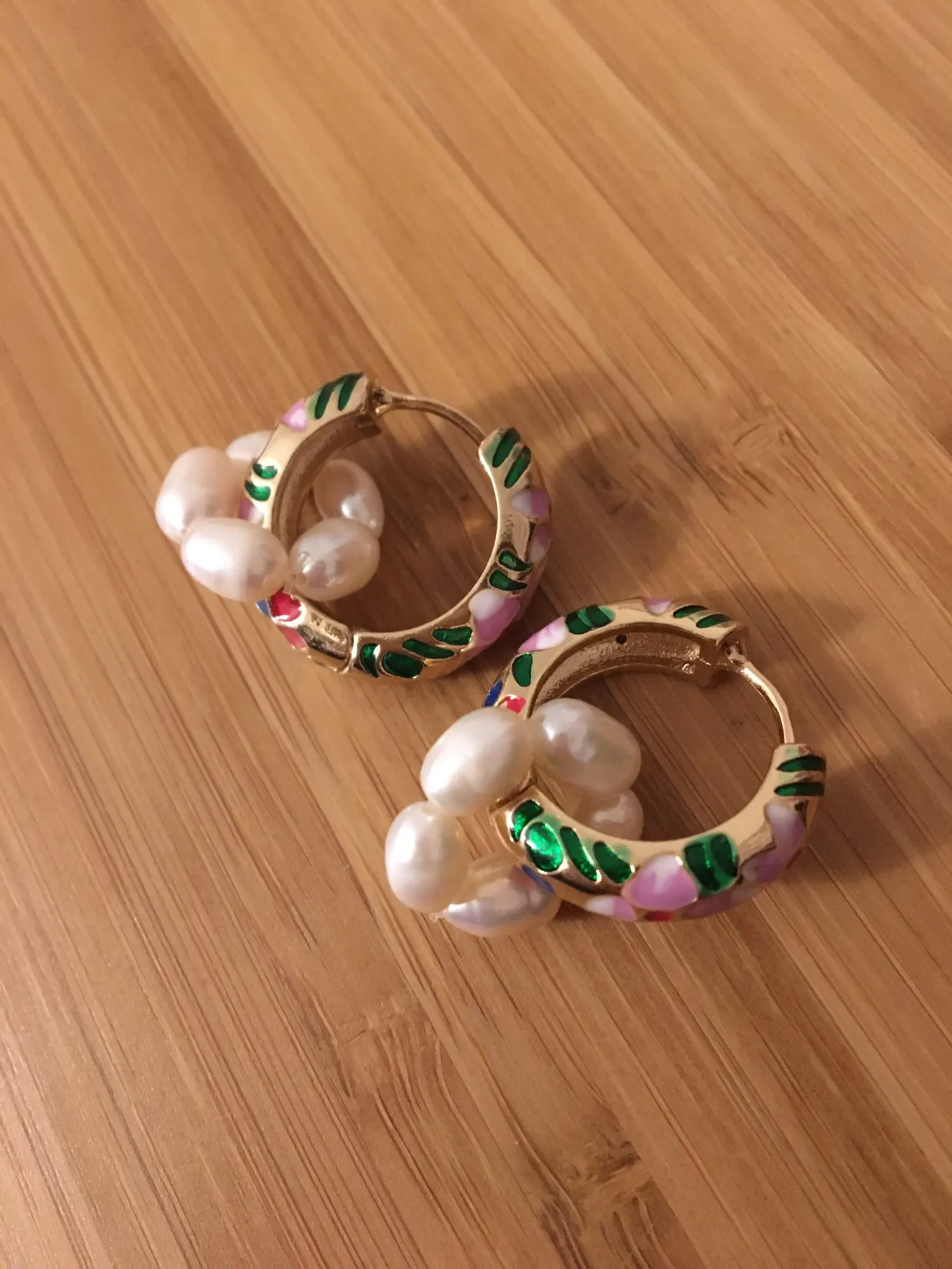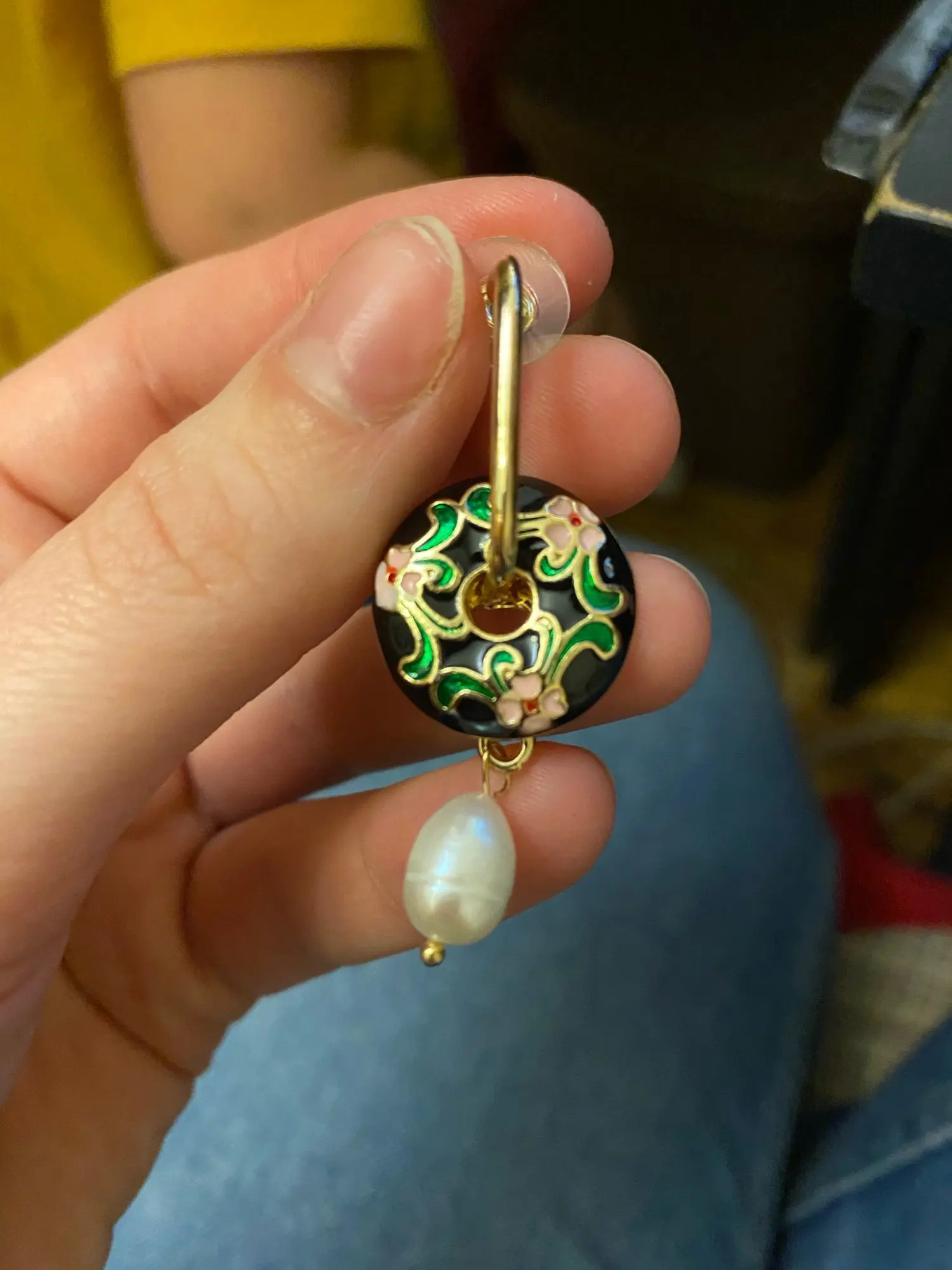 Отличные серьги. Приехали быстро. Смотрятся стильно. Увесистые. Жемчуг вроде натуральный речной. Диски с эмалью можно снять и повесить что-то другое.