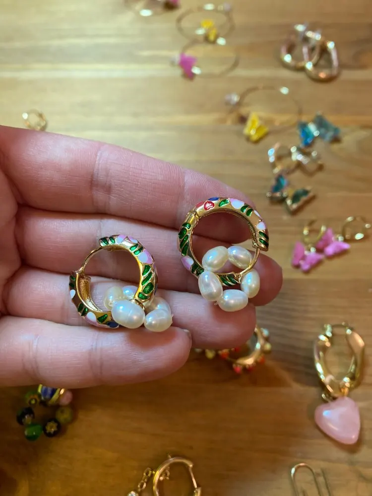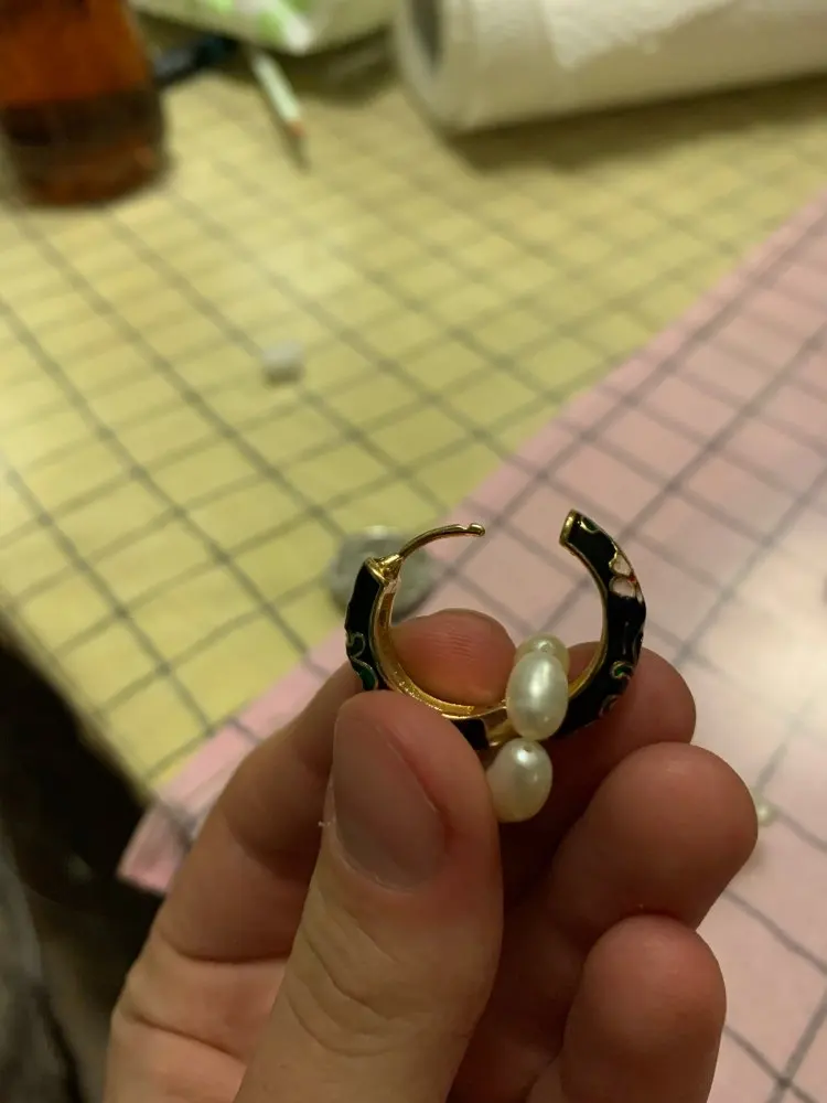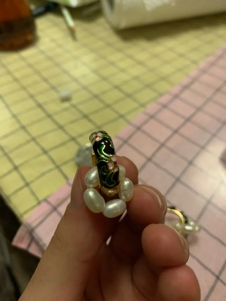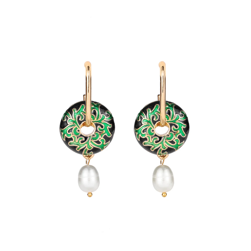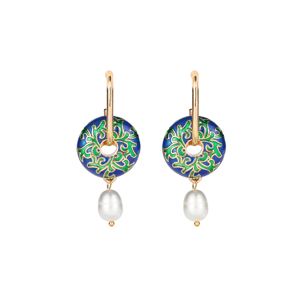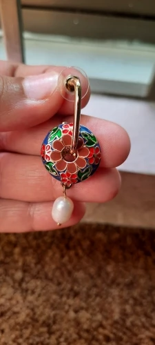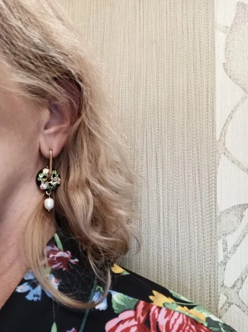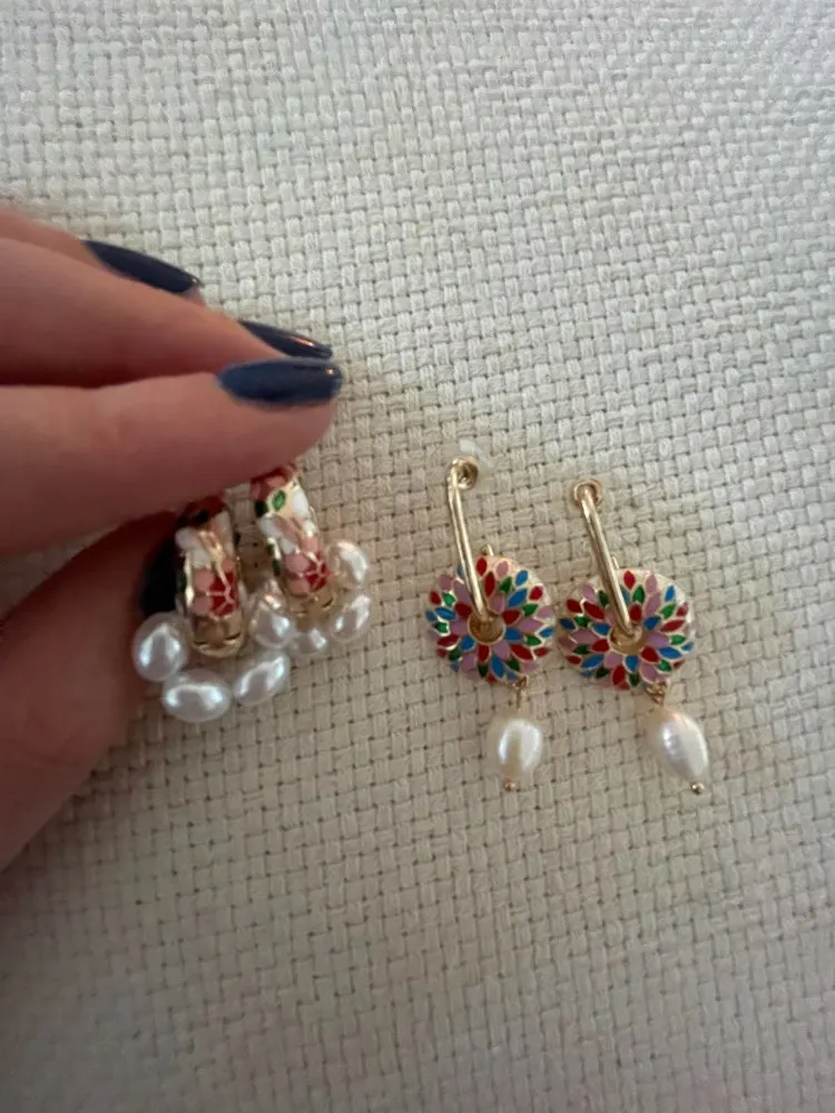 Отличные серьги. Приехали быстро. Смотрятся стильно. Увесистые. Жемчуг вроде натуральный речной. Диски с эмалью можно снять и повесить что-то другое.