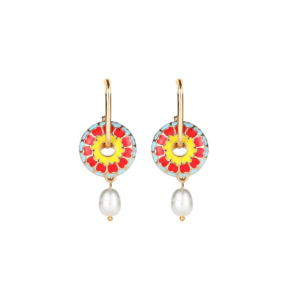 Винтажные круглые геометрические серьги-подвески с цветком Huggie для женщин, богемные круглые жемчужные эффектные висячие серьги, ювелирные изделия для вечеринок
