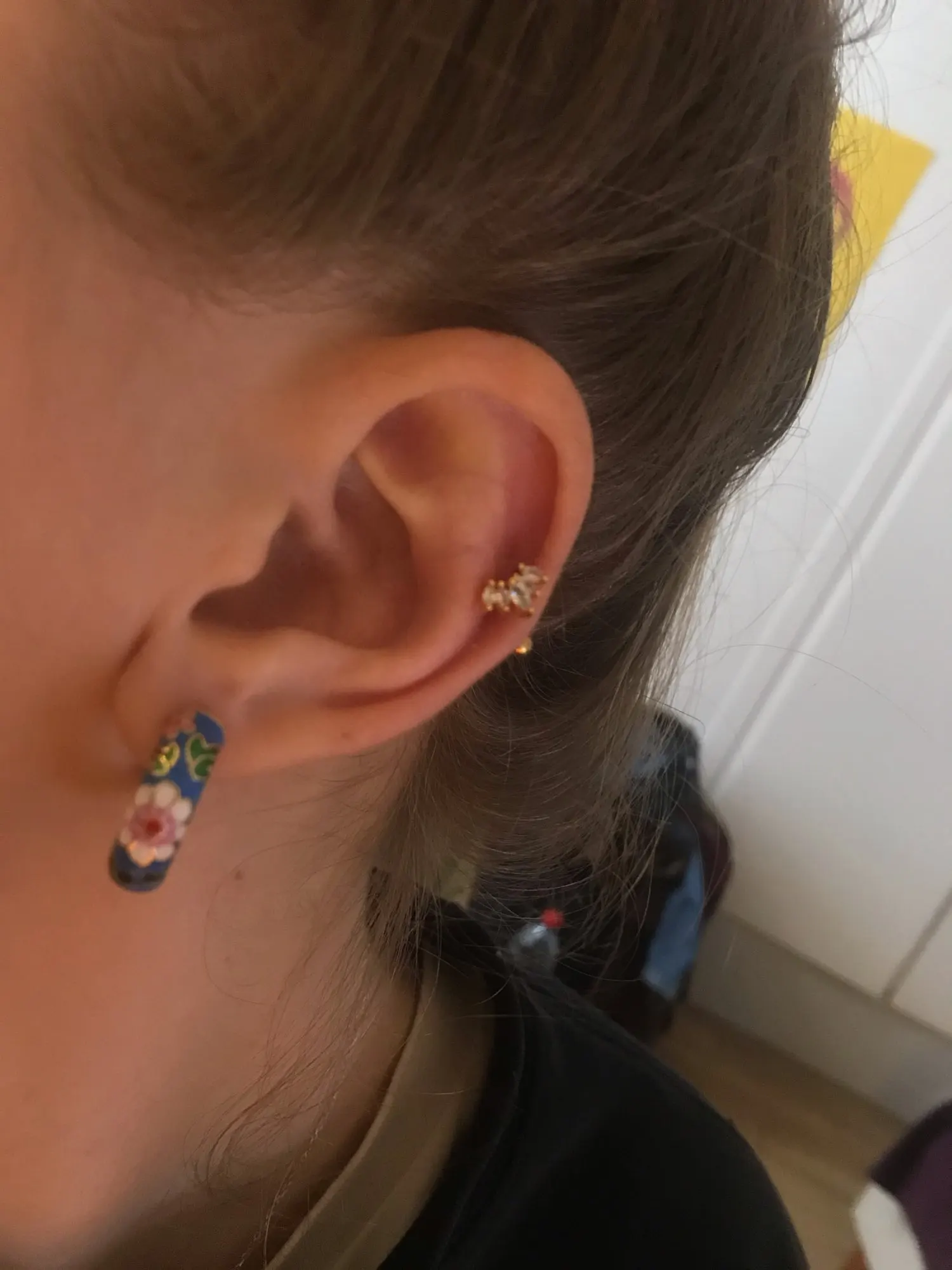 Доставка около 3 недель, серьги огоньточно как на фото, очень аккуратные, смотрятся отлично! Сам гвоздик из серого метала, посмотрим будет ли окисляться или нет. Минус - немного тяжеловаты, с непривычки есть ощущение что ухо оттягивается