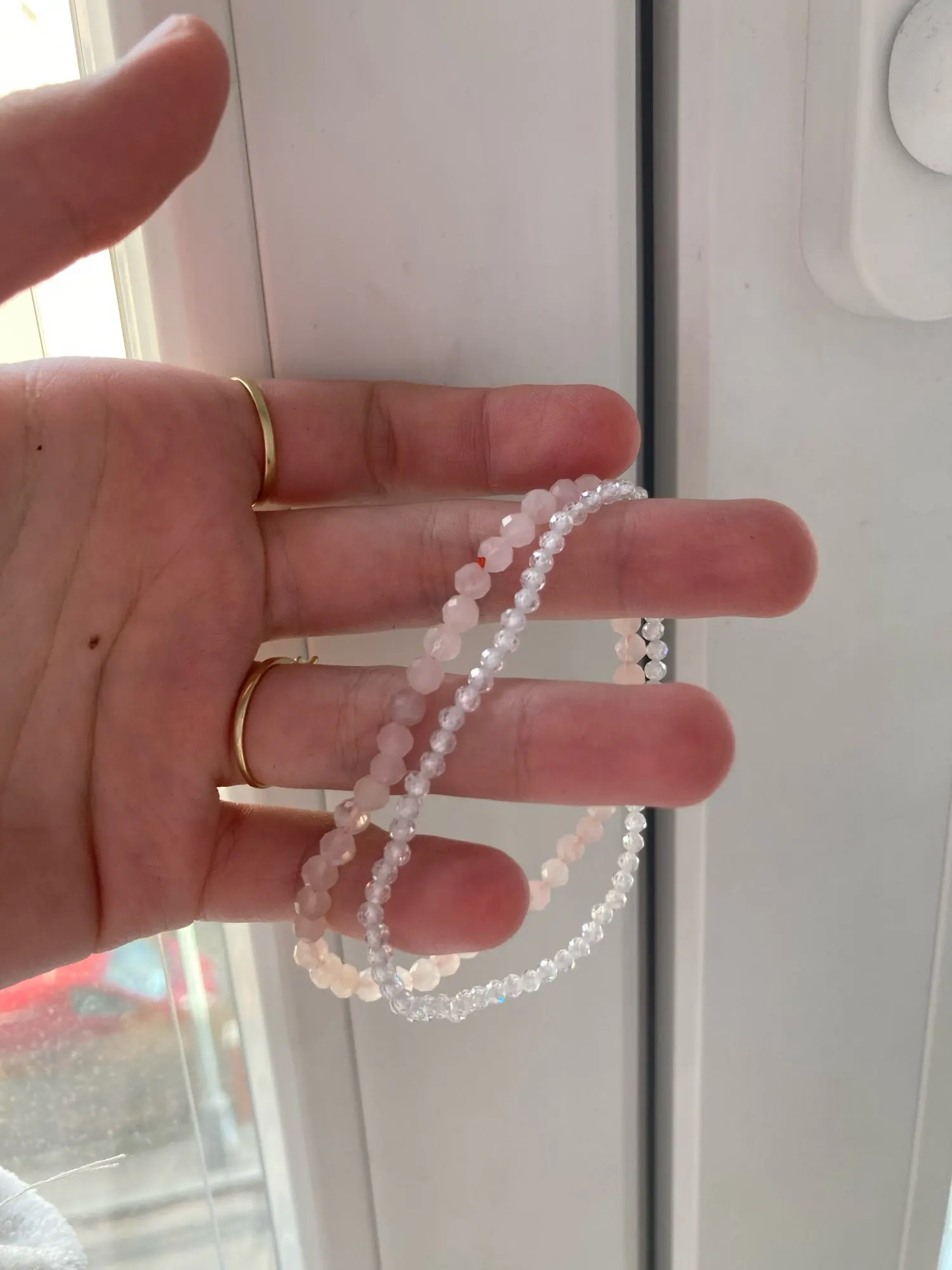 в калининградскую область доехали за полтора месяца. мелкие граненые бусины на резинке. фото полностью соответствуют. фото не делаю, так как раздарила уже. брала 7 разных. самые красивые- чёрный и сероватый, который заявлен как обсидиан. вот он вообще шикарно играет. желтенький и беленький очень красиво искрят на свету. голубойподарки очень пришлись по душе. рекомендую однозначно