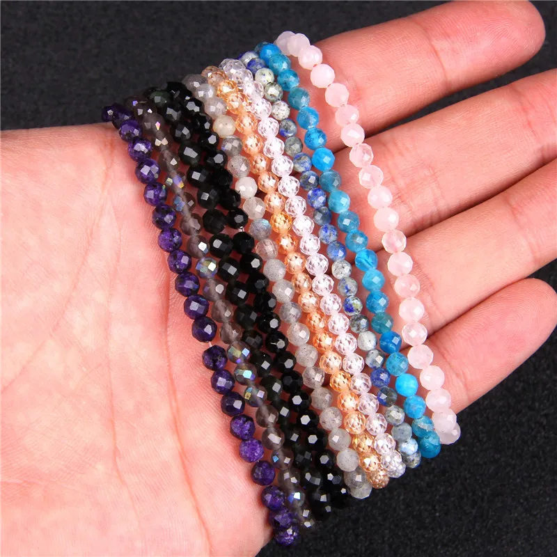 Браслеты унисекс из Природный чароит обсидиана, лазурита, эластичные, с маленькими кристаллами и бусинами, 4 мм