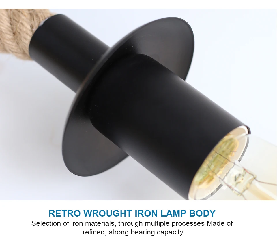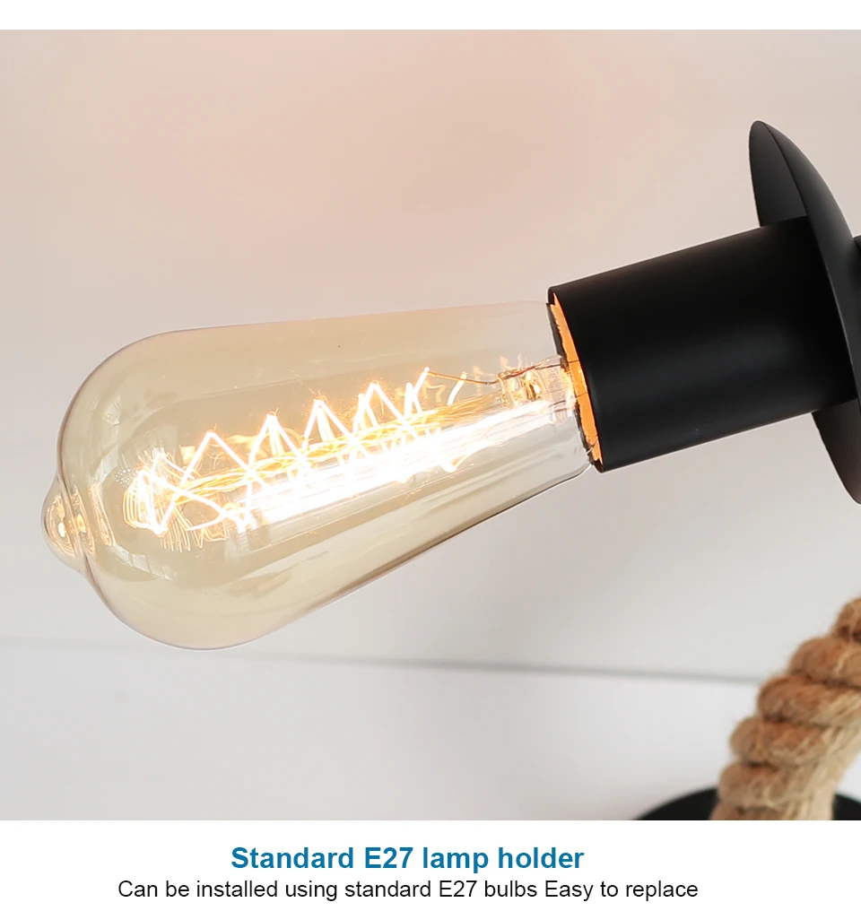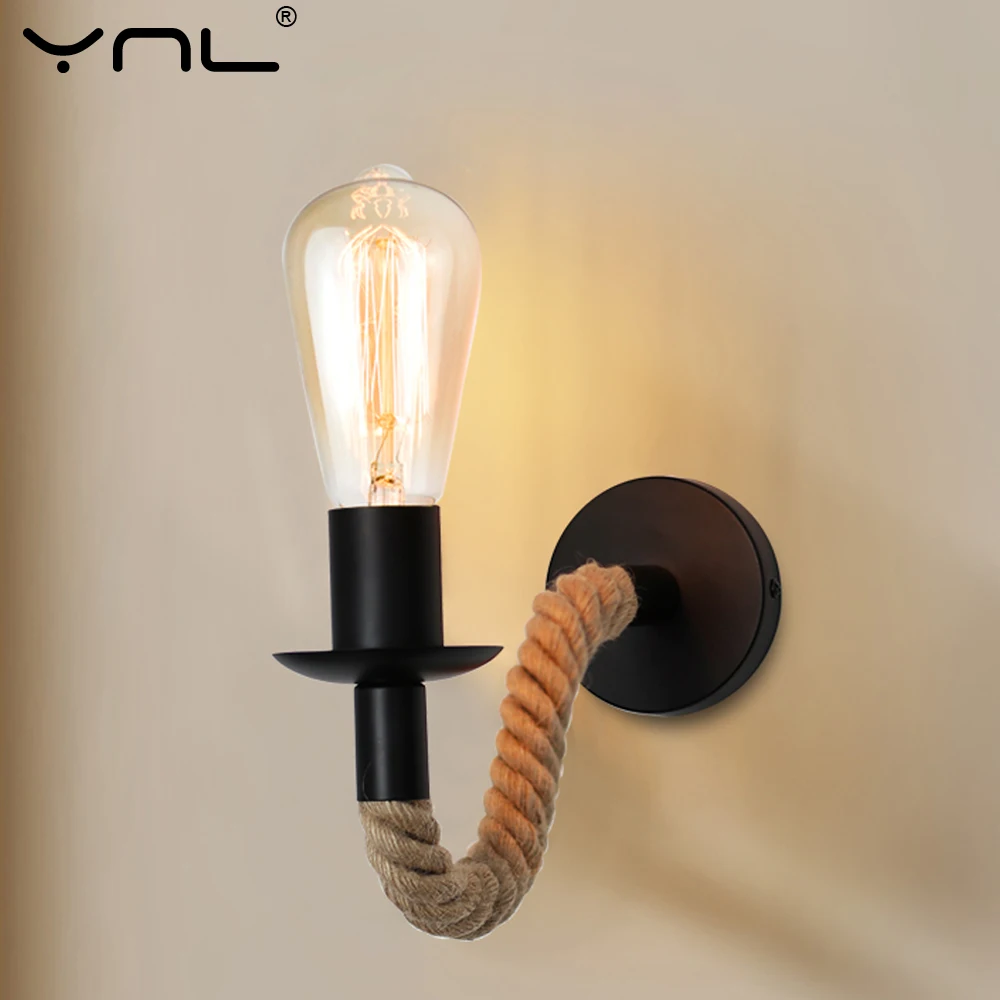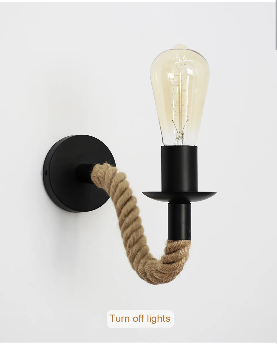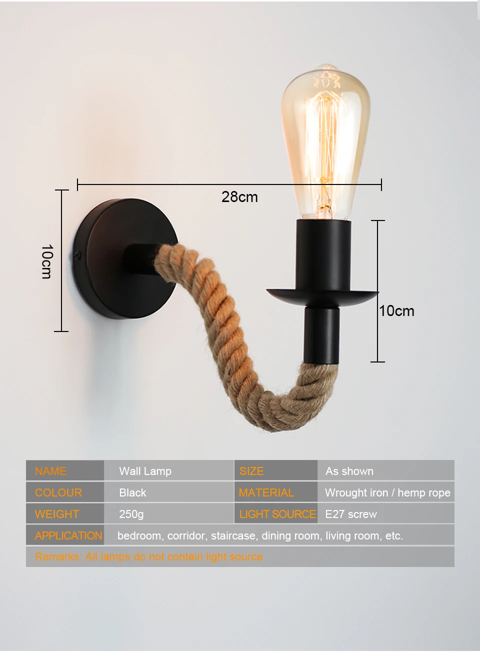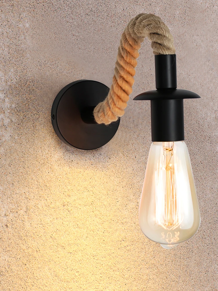 Винтажный настенный светильник E27, пеньковая веревка, ретро бра, настенный светильник в скандинавском стиле, современная спальня рядом с гостиной, для домашнего декора, освещение