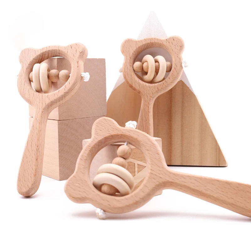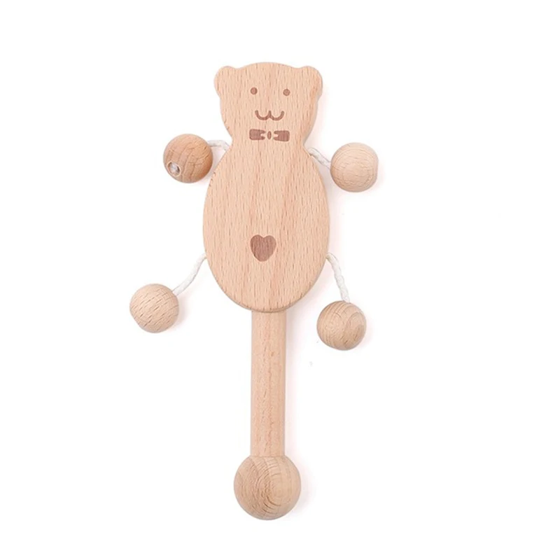 1 шт. деревянные детские игрушки-погремушки с буковым медведем ручное прорезывание зубов деревянное кольцо детские погремушки играть в тренажерный зал монтессори игрушка коляска развивающие игрушки