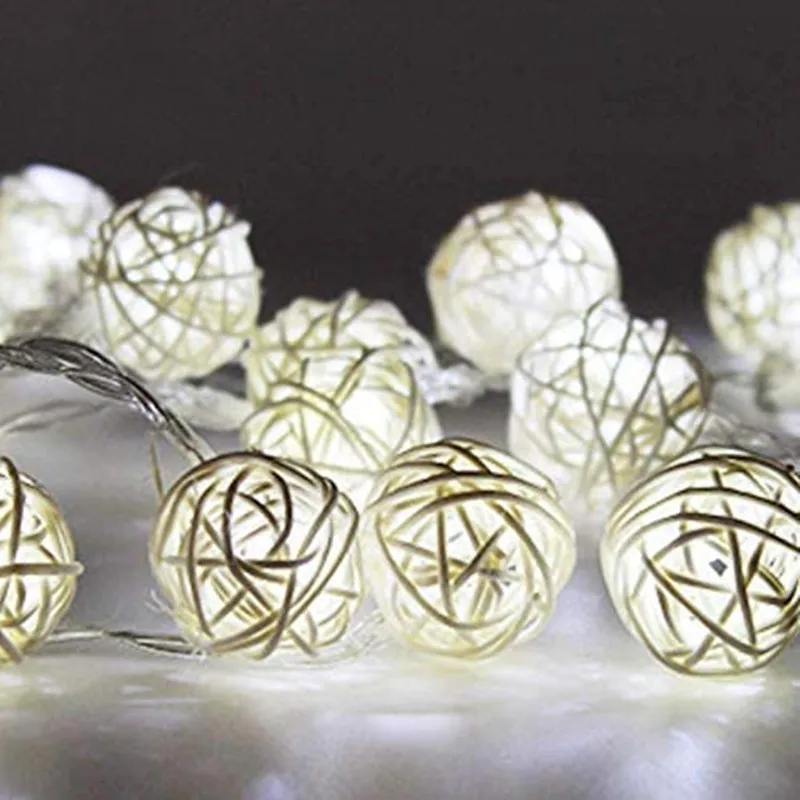 Батарея батарейках светодиодный гирлянды 10/20/40/80 светодиодный s Глобус ротанга Мячи Крытый светодиодная гирлянда с козырьком, декорированные для Спальня патио Вечерние