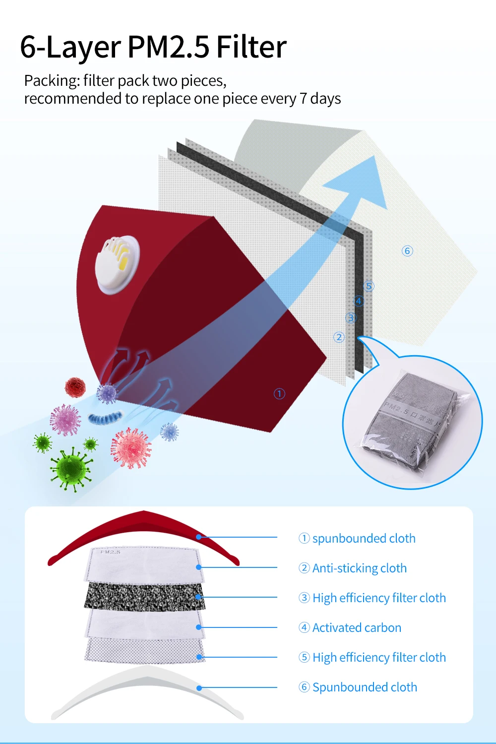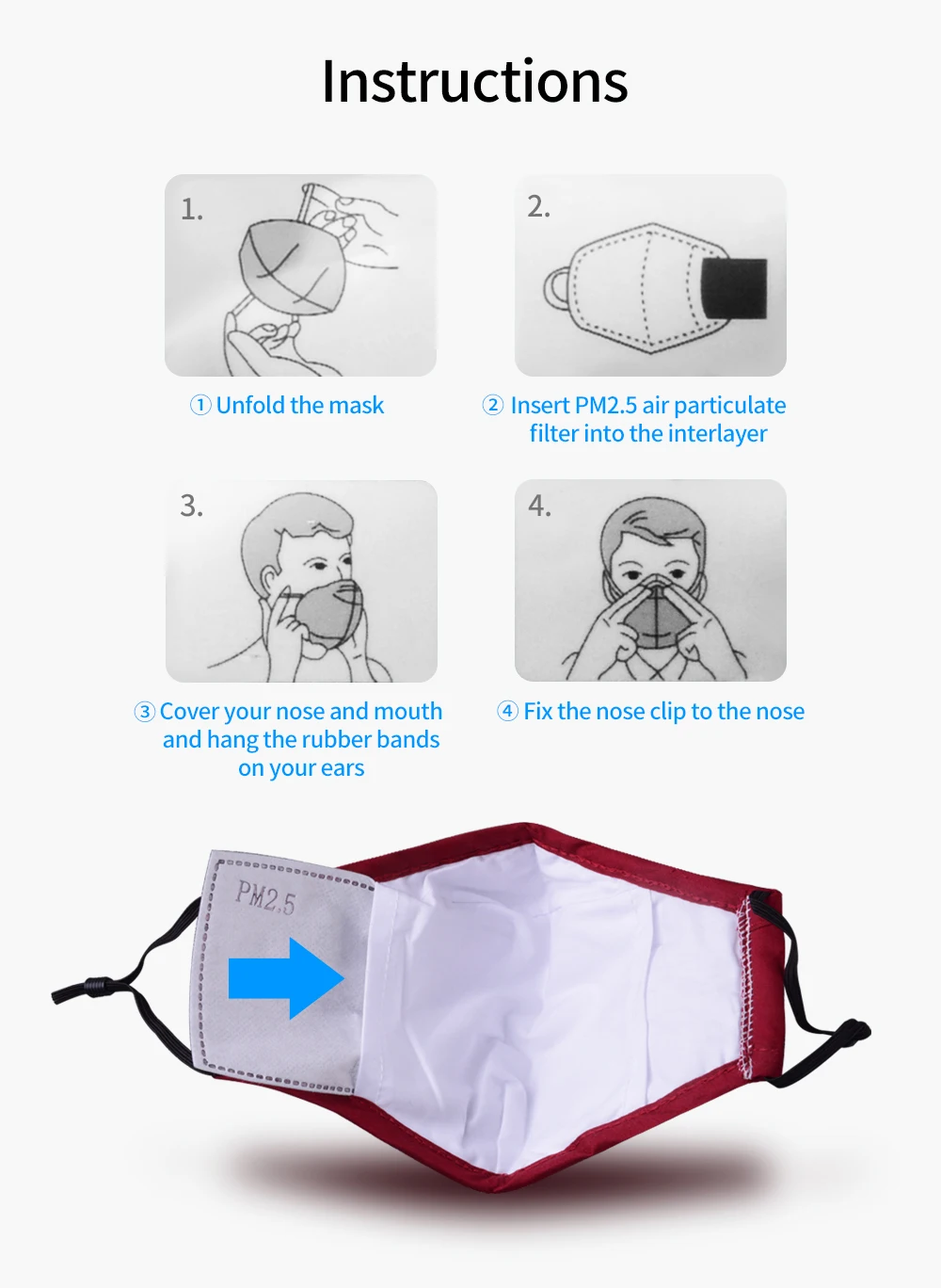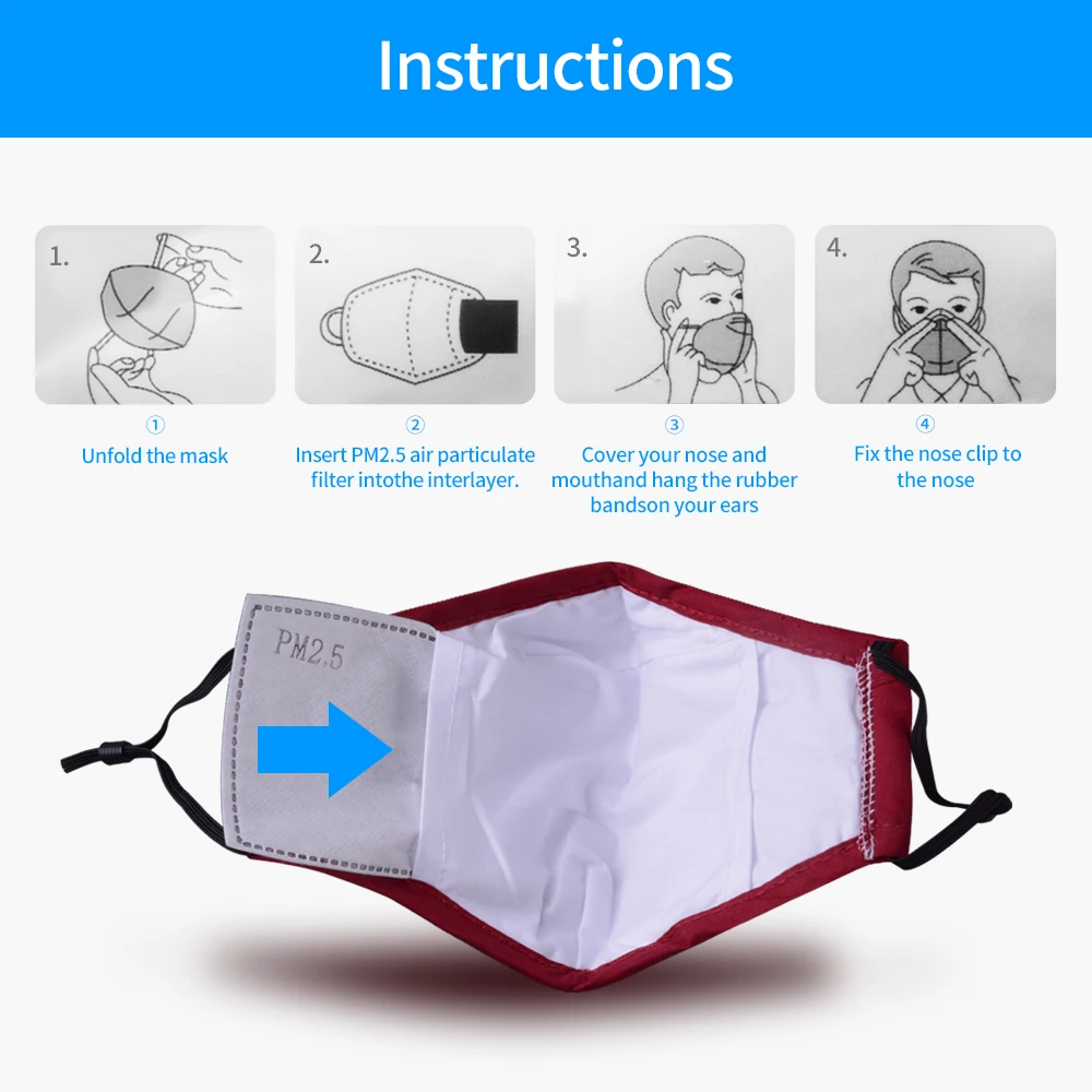Маска для лица PM2.5 противопылевая маска для рта респиратор Mascaras с 2 шт. угольным фильтром респиратор Resuable хлопковая маска