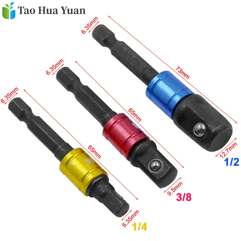 Переходник для ударного шуруповерта с шестигранным хвостовиком на квадратные сверла, 3 шт., набор удлинителей 12, 38, 14 А