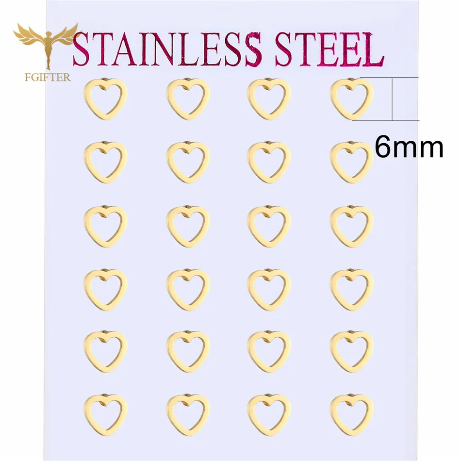 Материал: нержавеющая стальКачество на 100% абсолютно новый высокое качествоЦвет: золотые серьги в форме сердцаРазмер: 6 мм, 8 мм, 10 мм серьги в форме сердцаОбратите внимание: стиль сердца вырезан машиной, размер имеет погрешность 0-1 мм, пожалуйста, примите во внимание.Преимущество: антиаллергенный, не выцветаетНабор: 12 пар/лот