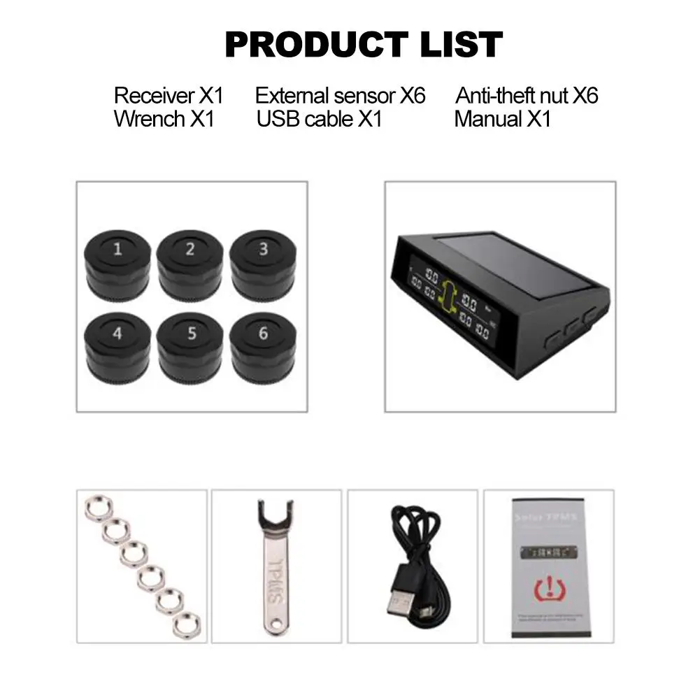 Автомобильные TPMS система контроля давления в шинах, солнечная энергия, цифровой ЖК-дисплей, автоматические системы охранной сигнализации с 6 внешними датчиками