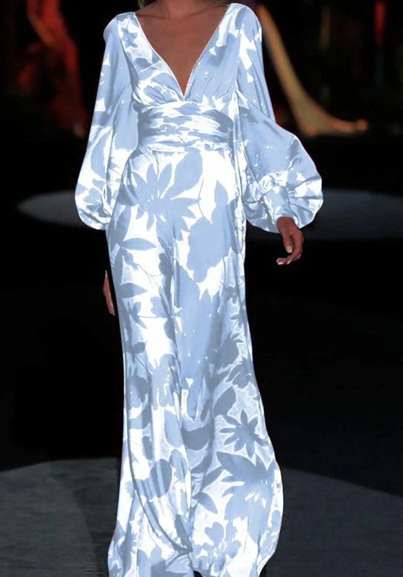 Женское вечернее платье, Осеннее разноцветное платье с V-образным вырезом и высокой талией, праздничные платья с принтом, женское модное платье с рукавами-фонариками, длинные платья