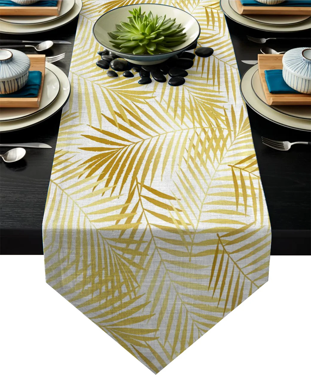 Золотая тропическая Пальма настольная дорожка для отеля свадебный торт Цветочная фотография